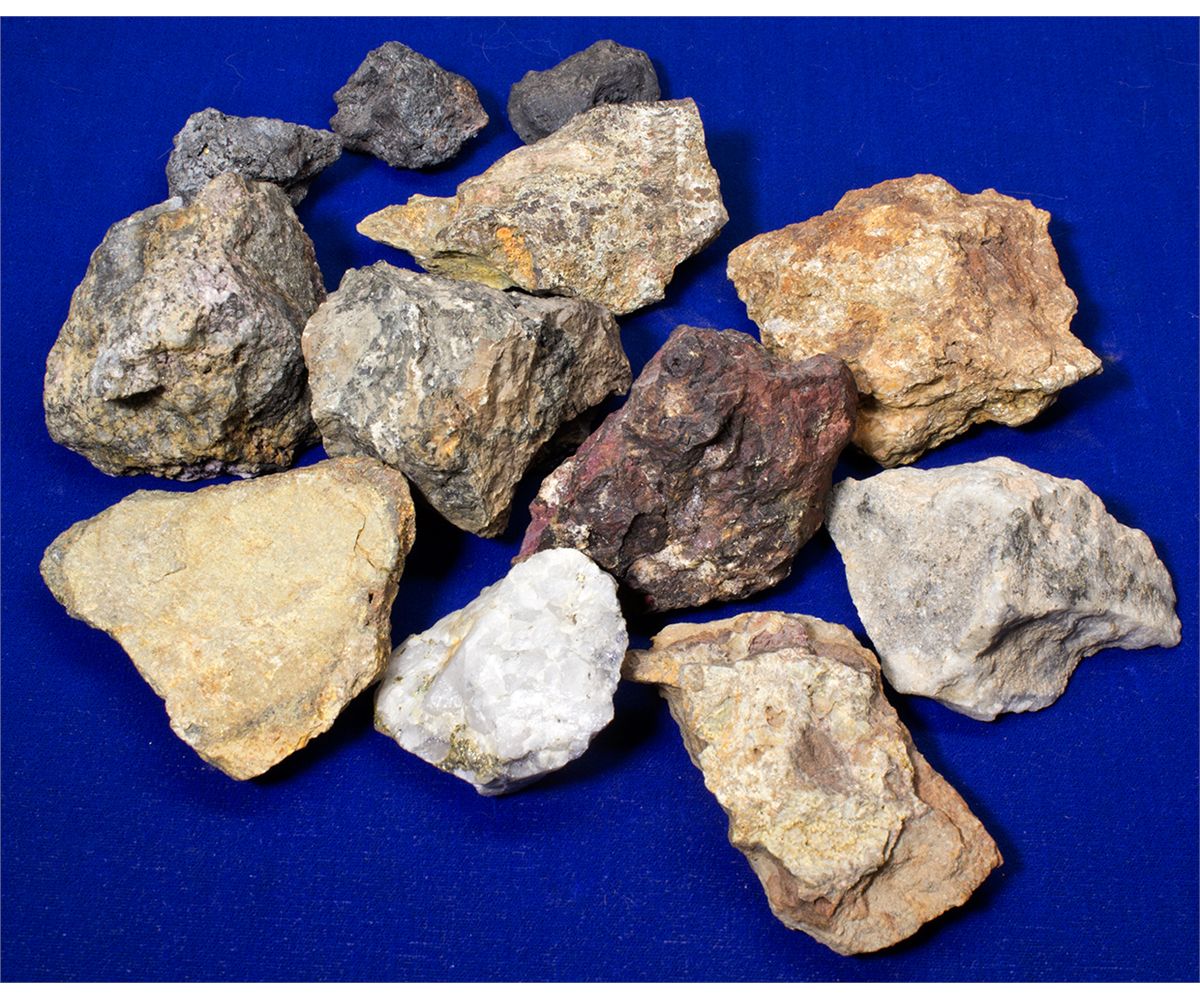 This collection includes 12 silver ore specimens from the Fred Willoughby Collection. Willoughby was the manager of the Midnight Mine at Aspen, which may be the locale of the collection offered here. The specimens here range in size from 30mm x 30mm x 22mm to 80mm x 55mm x 45mm. Some show striking quartz formations, and others bear iron-rich red hues. A great collection for the serious geologist or mining enthusiast. - HKA#64304