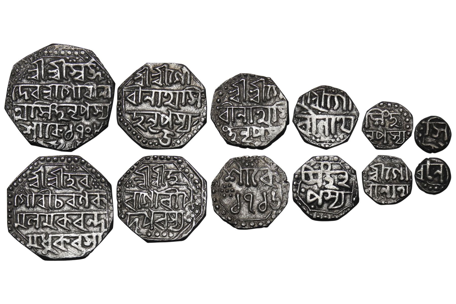 Assam – Ahom Kingdom - Gaurinatha Simha (Suhitpanpha) (SE 1702-1718/1780-1796 AD), set of six Silver coins (6 coins).