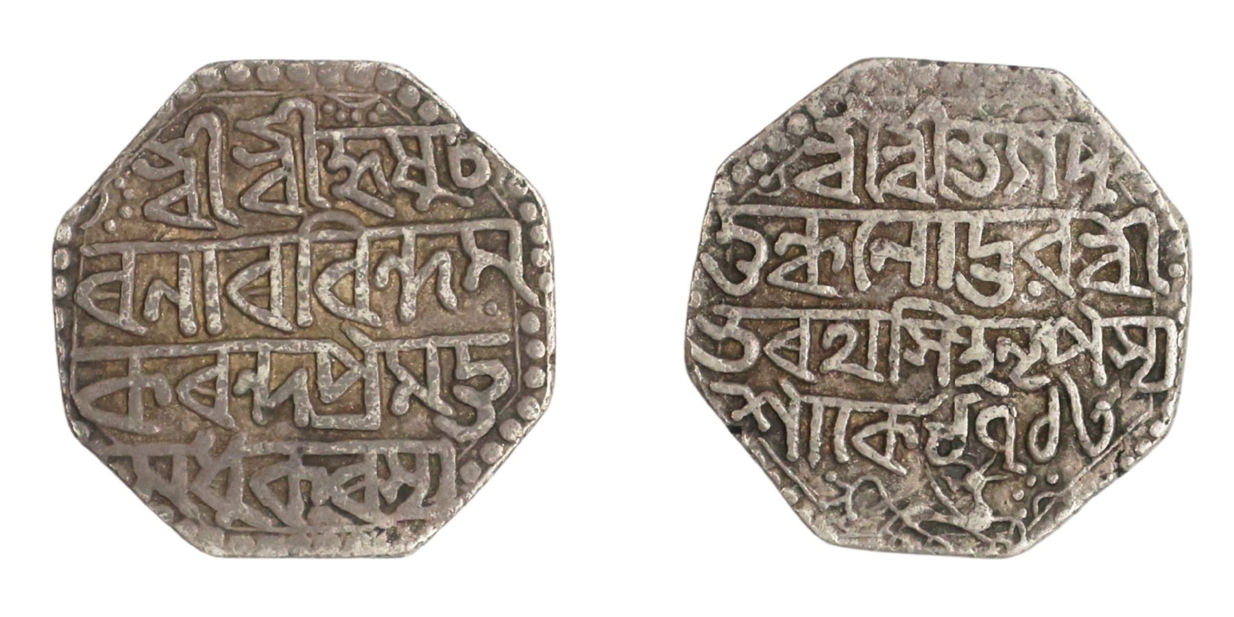 Assam: Bharatha Simha, Octagonal Silver Rupee, SK. 1713