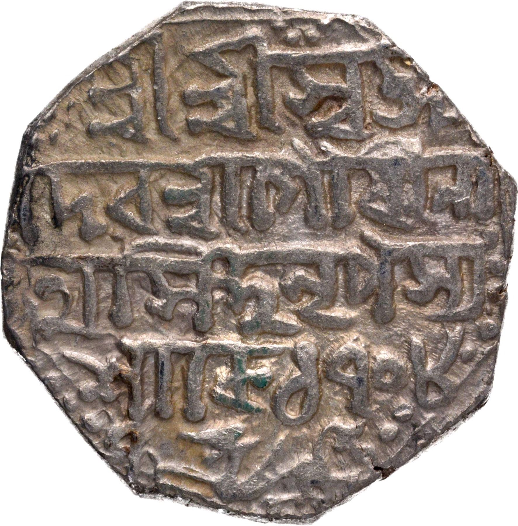 Assam Kingdom, Gaurinatha Simha (Suhitpanpha) (SE 1702-1718/1780-1796 AD), Silver Rupee, SE 1708/ 7 RY, Obv: Assamese legend "sri sri hara / gauri charana ka / mala makaranda / madhukarasya", Rev: Assamese legend "sri srimat sva/ rga deva sri gau / rinathasya / saka 1708 and 7", 11.5g, 22.25mm, (KM # 218/RB # R40.2), XF, Scarce.
