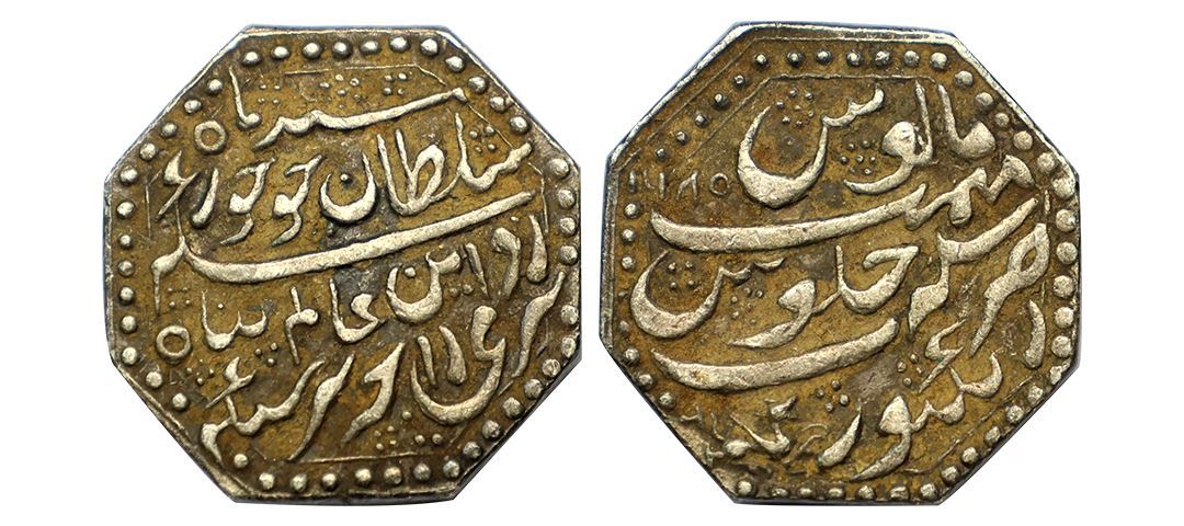 Assam Silver Rajeswara Simha, Silver Rupee, 11.39g, Saka 1685, Persian script, Rangpur Mint, obv. Ain sikkah zad chu zaq ze mihr mah, sri rajesvara singh sultan alam panah; (Sri Rajesvara Simha, refuge of the world, struck this coin truly like the sun and the moon), rev. zarb rangpur sanah 1685 jalus maimanat manus, small winged lion running to right at bottom, various dotted flowers all over on both sides (R&B O89.1, A Mitra 224). Extremely Fine, Rare.