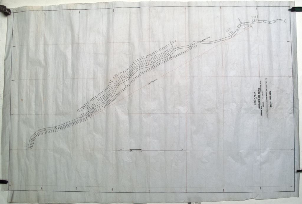 Mine elevations have numbers by them, probably $ value for gold at that level. Done by the Goldfield Consolidated Mines Exploration Company. 41" x 27".