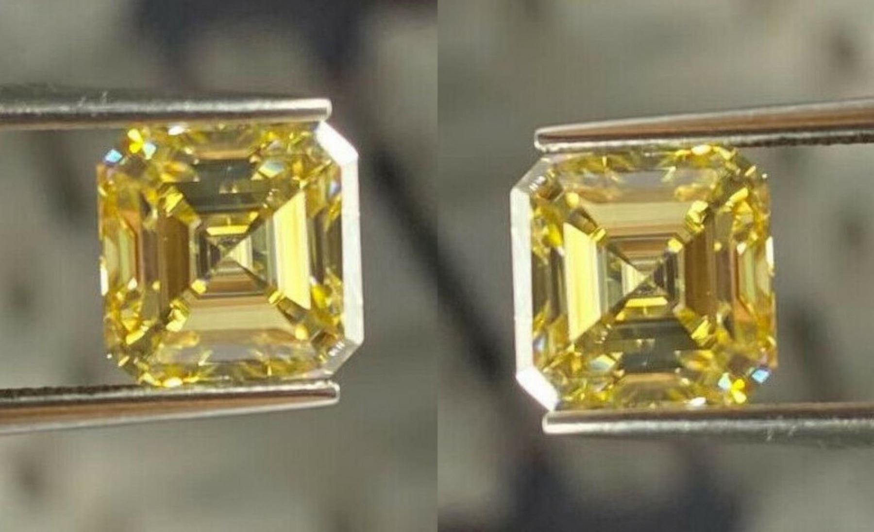 Asscher Cut Lab Created Yellow Diamond Pair