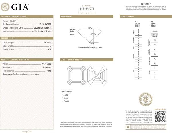 Asscher Diamond Shape1.35carat :D:VS2:GIA:Dim.:6.26*6.23*4.18