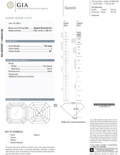 Asscher Diamond Shape1.7carat :I:SI1:GIA:Dim.:6.39*6.32*4.38