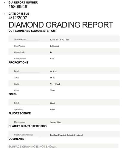 Asscher Diamond Shape2.01carat :D:VS1:GIA:Dim.:6.66*6.61*5.31