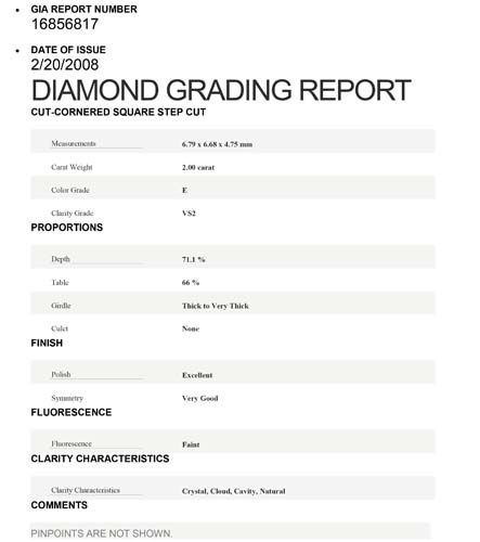 Asscher Diamond Shape2carat :E:VS2:GIA:Dim.:6.79*6.68*4.75