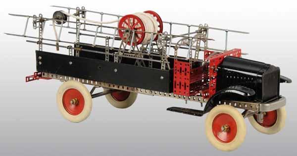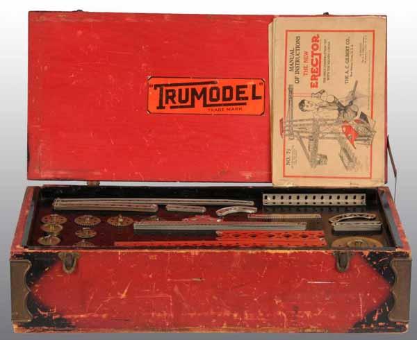 Description Appears to be mostly complete with original rubber tires, ladders, and hose reel. Original wooden box marked "Tru Mode Erector # 7 - 1/2" is included. Condition (Excellent). Size 32" L.