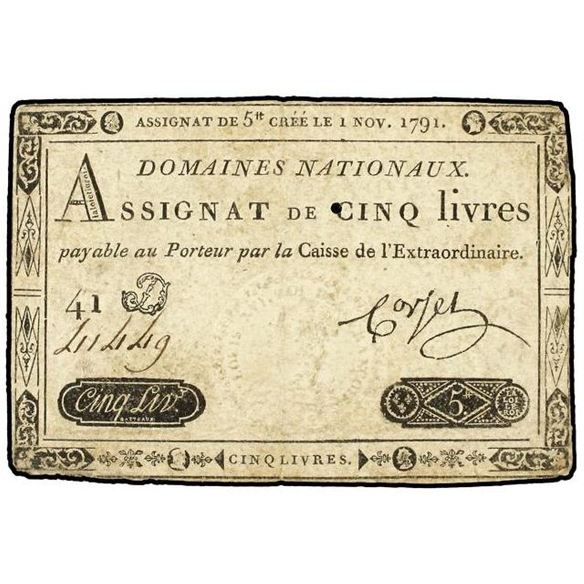 Assignat de cinq Livres.. - 1 Noviembre 1791. - FRANCIA. DOMAINES NATIONAUX. - Sello en seco ´LOUIS XVI. ROI DES FRANÇOIS´.