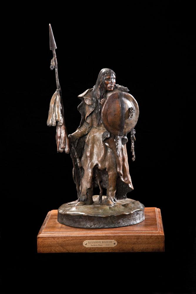 Bronze 18” tall Stands on 1 3/4” wood base Signed with initials RBD 1/30 Colored patina Estate of noted Northern California collector