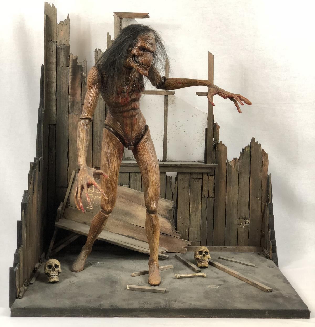 Created and Sculpted by Robert Kurtzman. Made of polyurethane and measures 16" tall with toy guns and accessories.