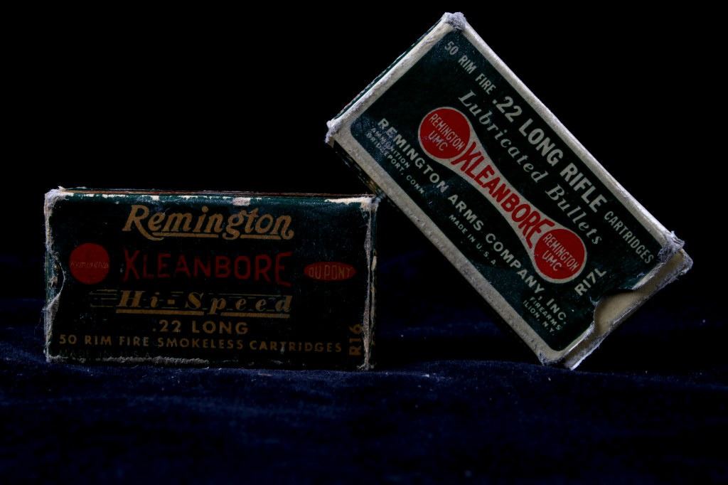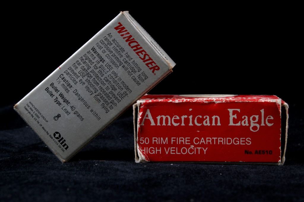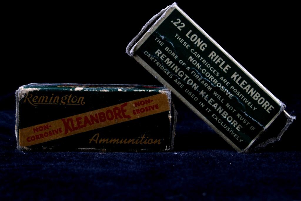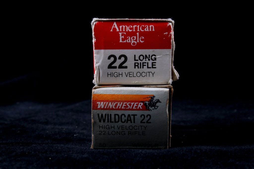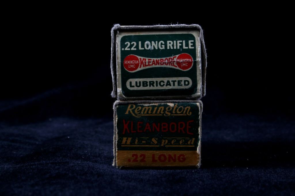 Included in this lot is a collection of assorted .22 caliber box ammunition. There are four Western Super-X .22 Short boxes. All show bright yellow, deep blues and vibrant red coloration. There are an additional three Remington Hi-Speed Kleanbore .22 Short boxes as well. They show some wear but still retain good color. Also included in the collection is a Remington Kleanbore .22 LR box, a Remington Kleanbore Hi-Speed .22 LR box, an American Eagle .22 LR High Velocity box and a Winchester Wildcat 22 box all in good condition. The boxes are full with the exception of the two Remington Kleanbore boxes which are partial fills.