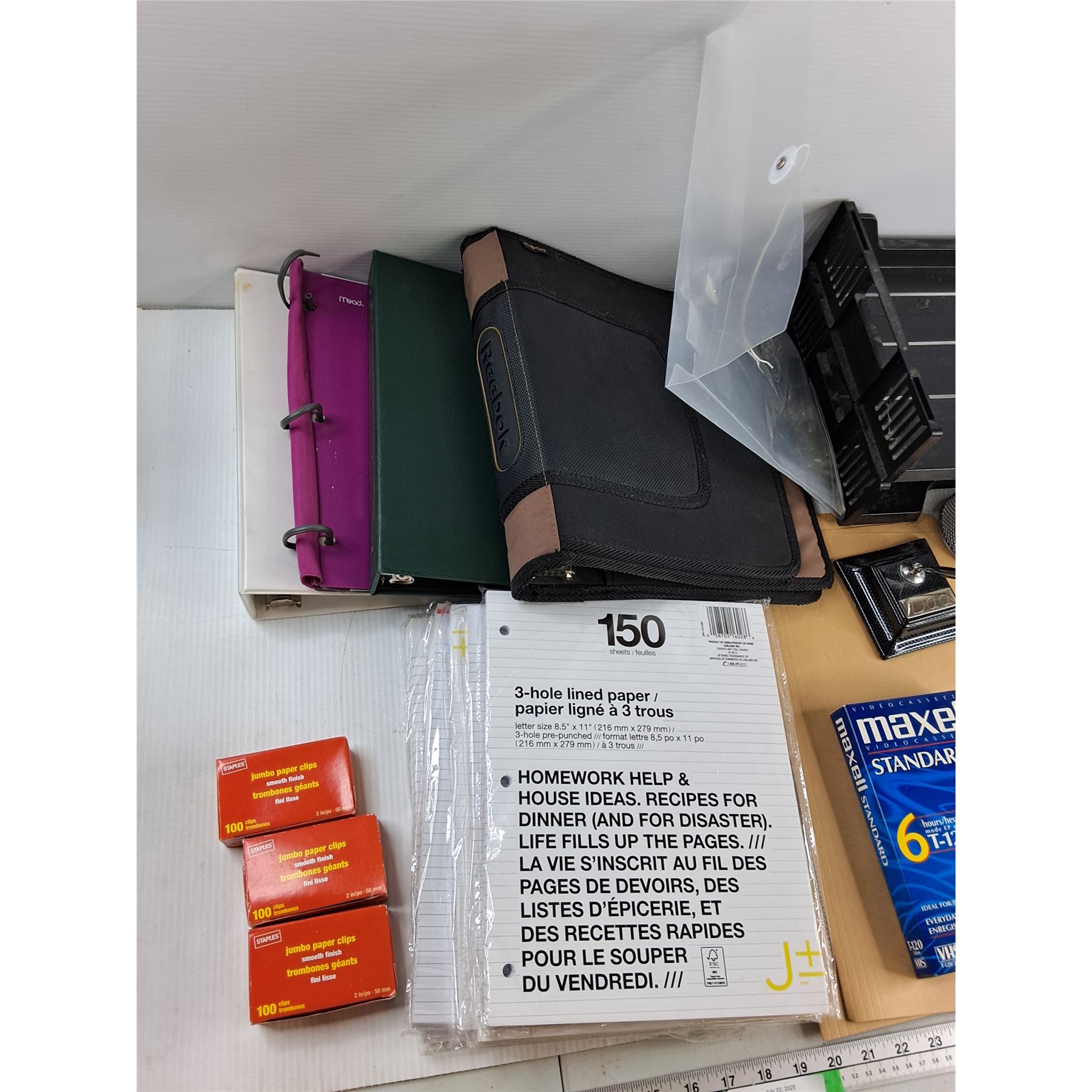 Assorted - (4) Binders, (4) Lined Papers, Paper Clips, Misc