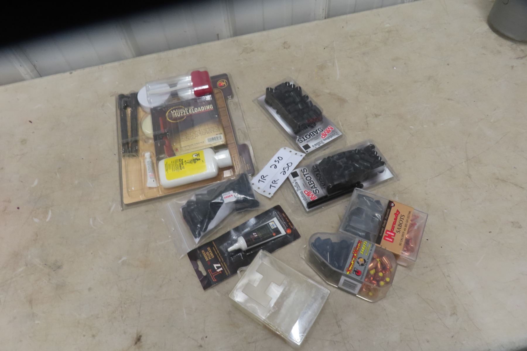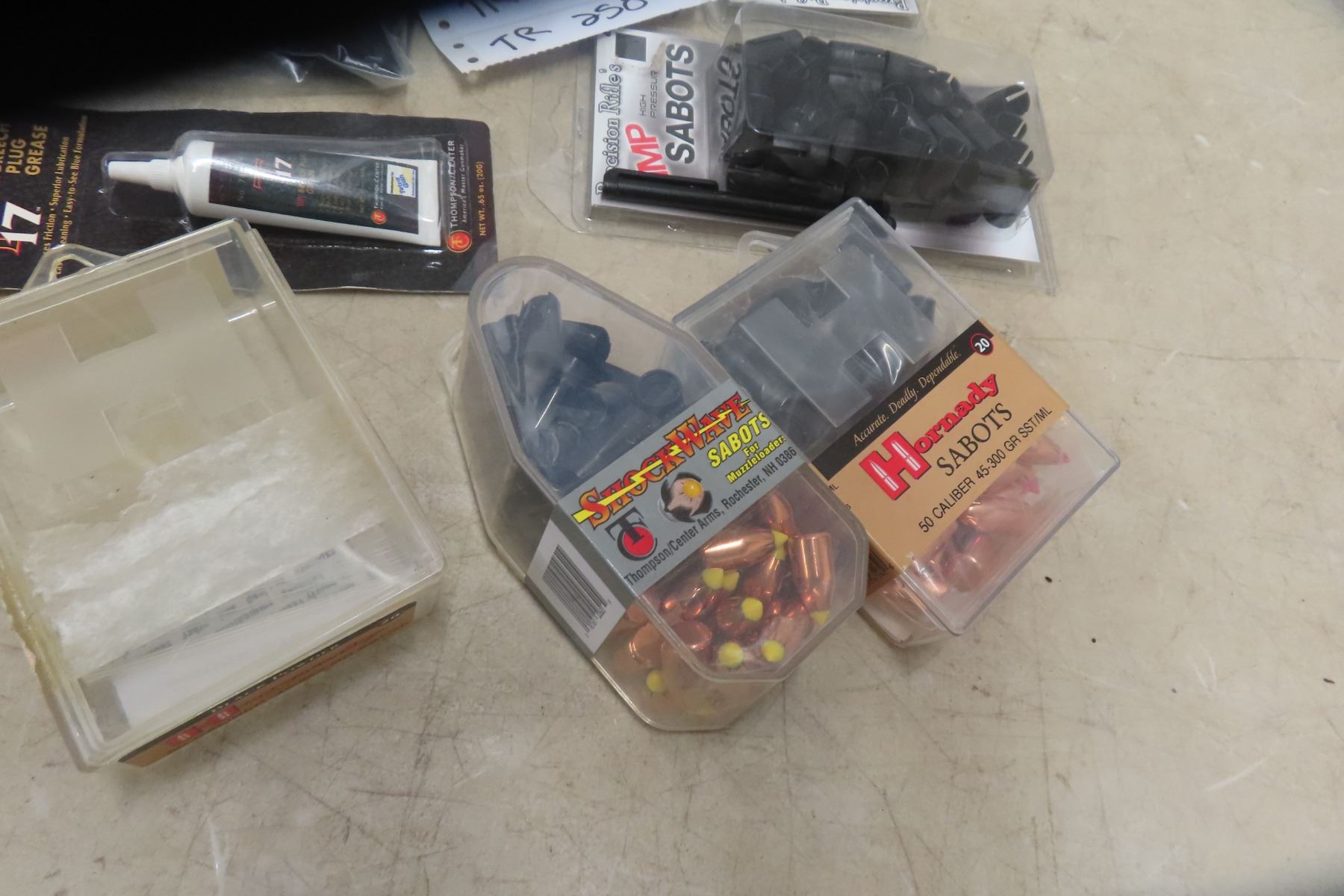 Assorted .50 Caliber Reloading Sabots and Bullets with Muzzle Cleaning Kit and Breech Grease MUST HAVE A VALID PAL TO BID. WE CANNOT SHIP AMMO/PRIMERS. IF YOU REQUIRE SHIPPING AND BID ON AMMO, YOU WILL BE RESPONSIBLE TO PAY FOR IT AND RESELL IT UNDER YOUR CONSIGNMENT IN THE NEXT GUN AUCTION.