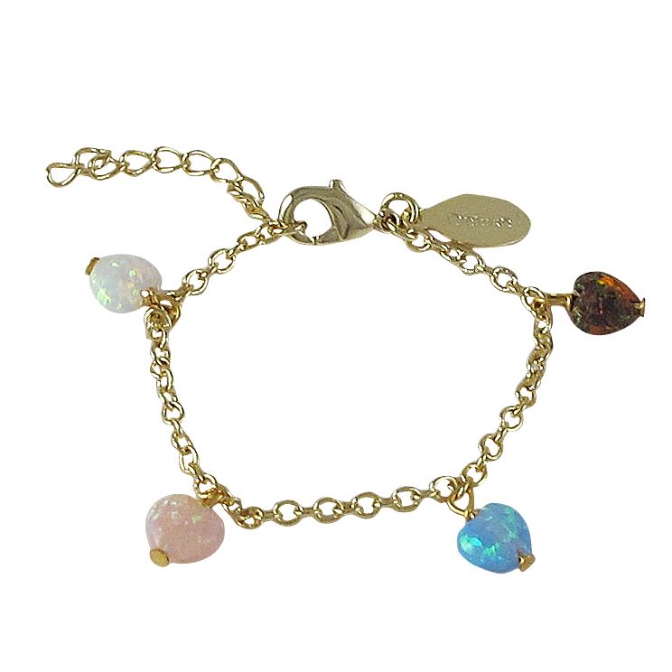 Assorted 6X6mm Opal Hearts Dangling Charm Bracelet