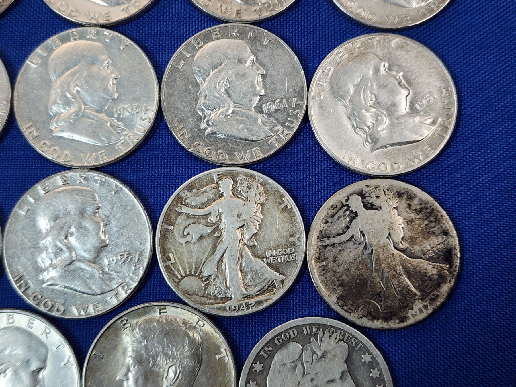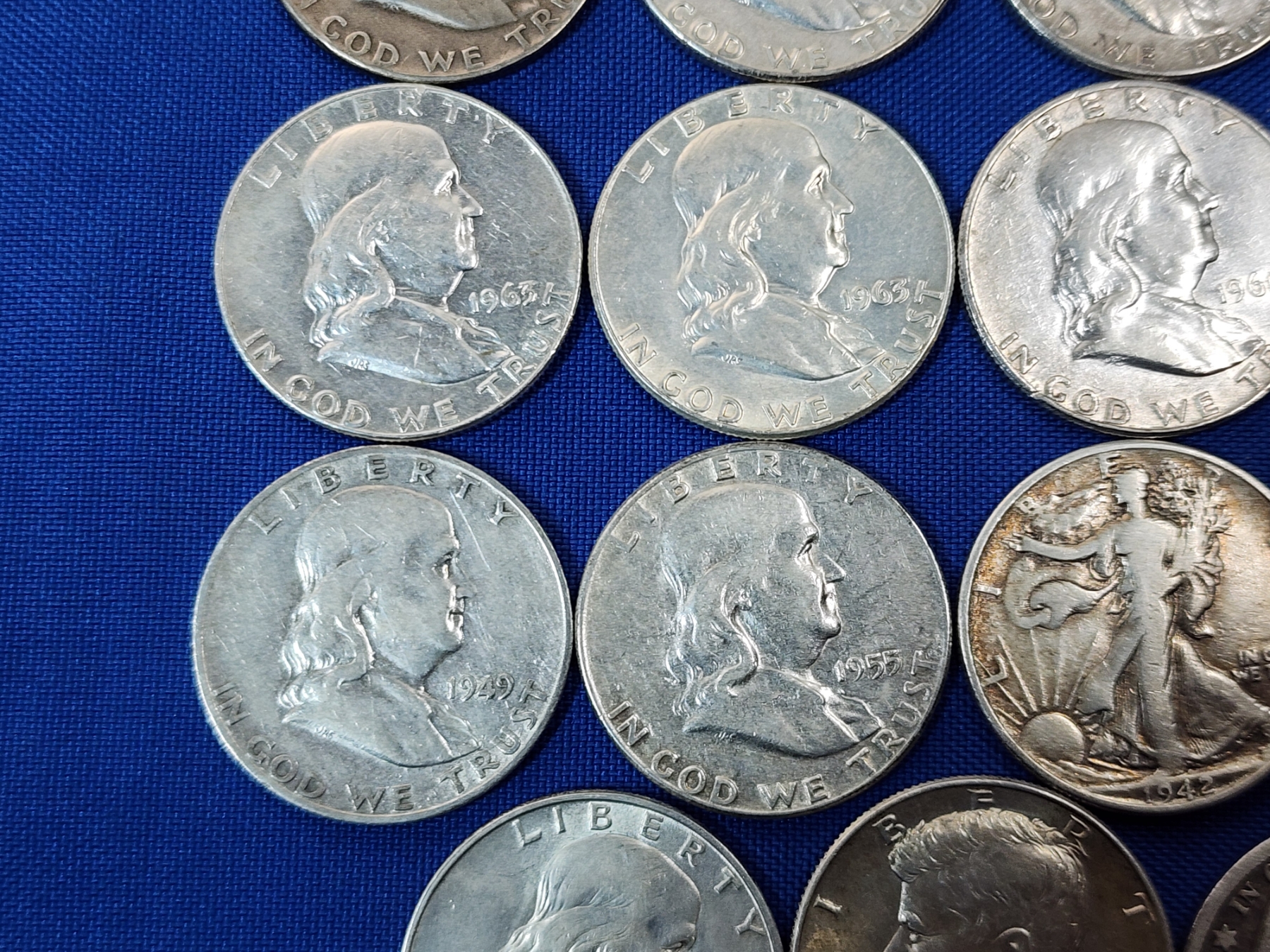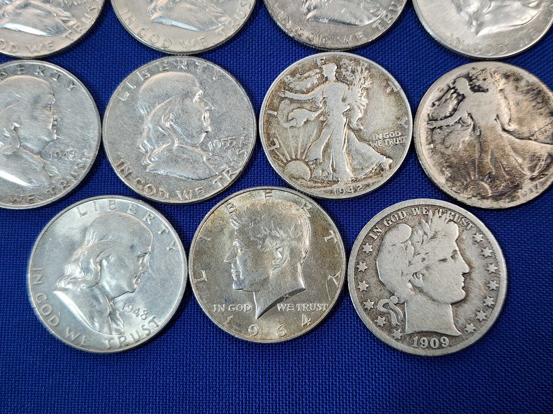 Assorted 90% Silver Half Dollars: Franklin, Walking Liberty, Kennedy - FV: $7.50