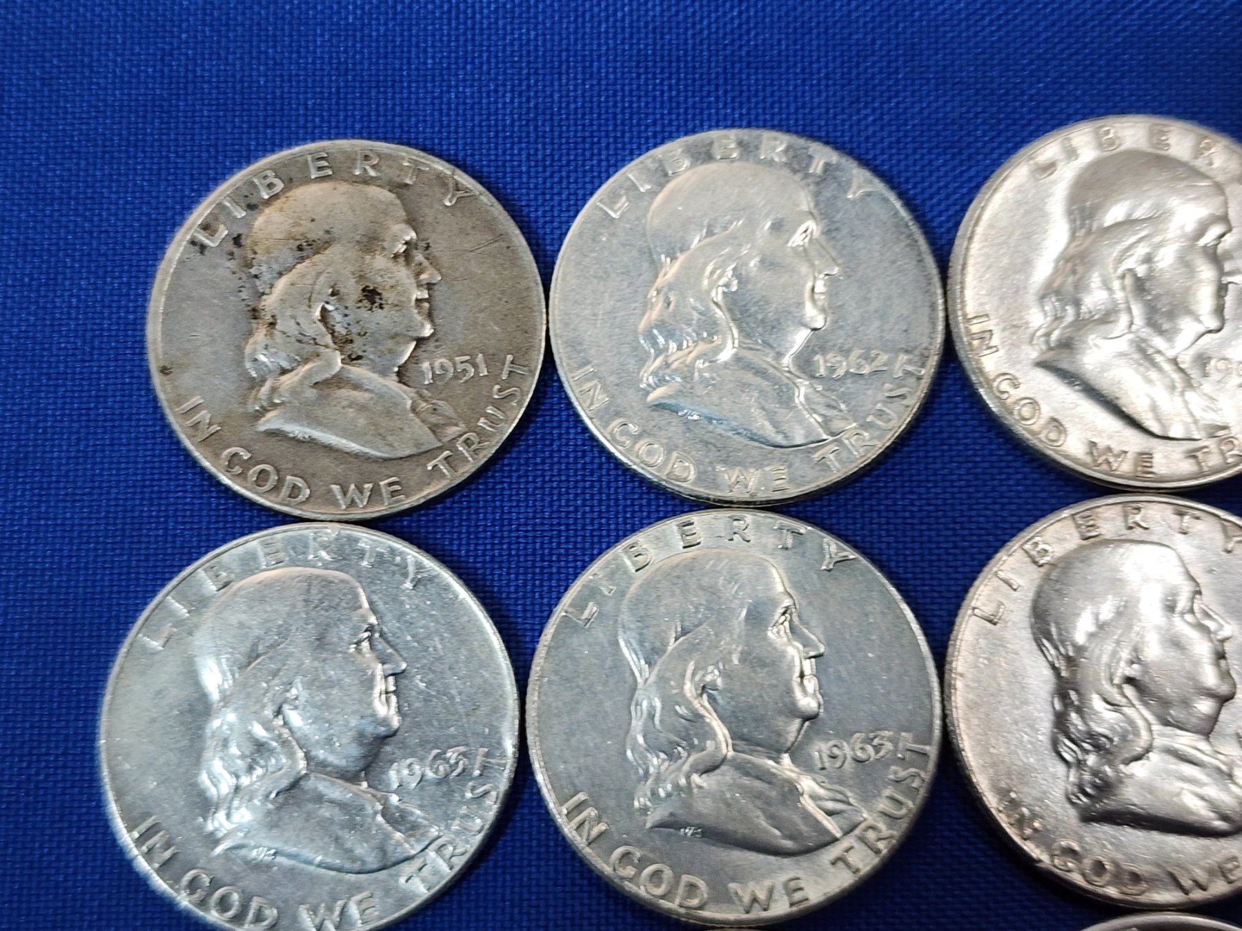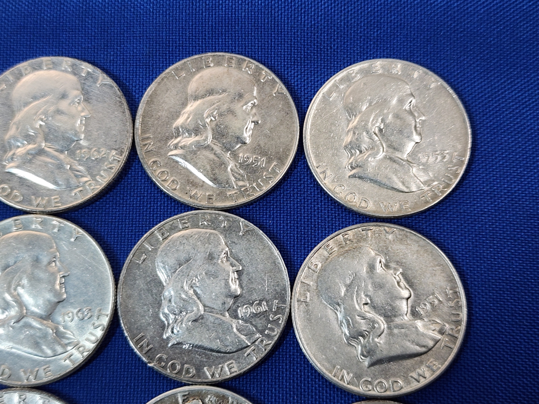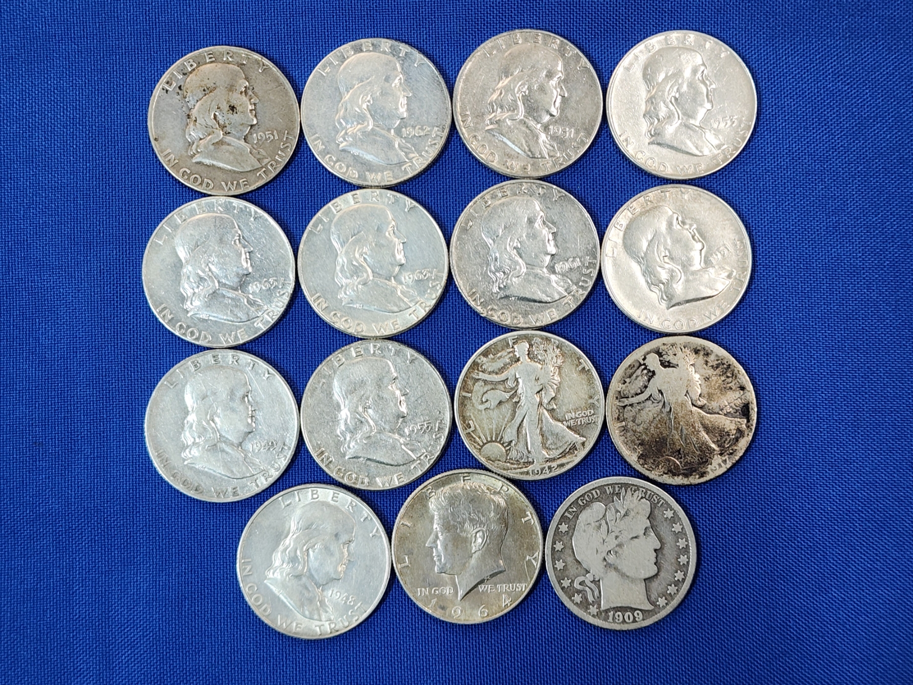 Assorted 90% Silver Half Dollars: Franklin, Walking Liberty, Kennedy - FV: $7.50