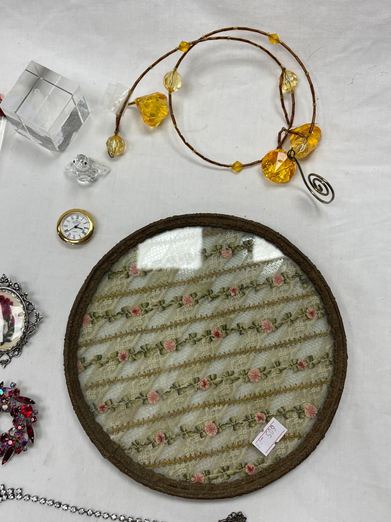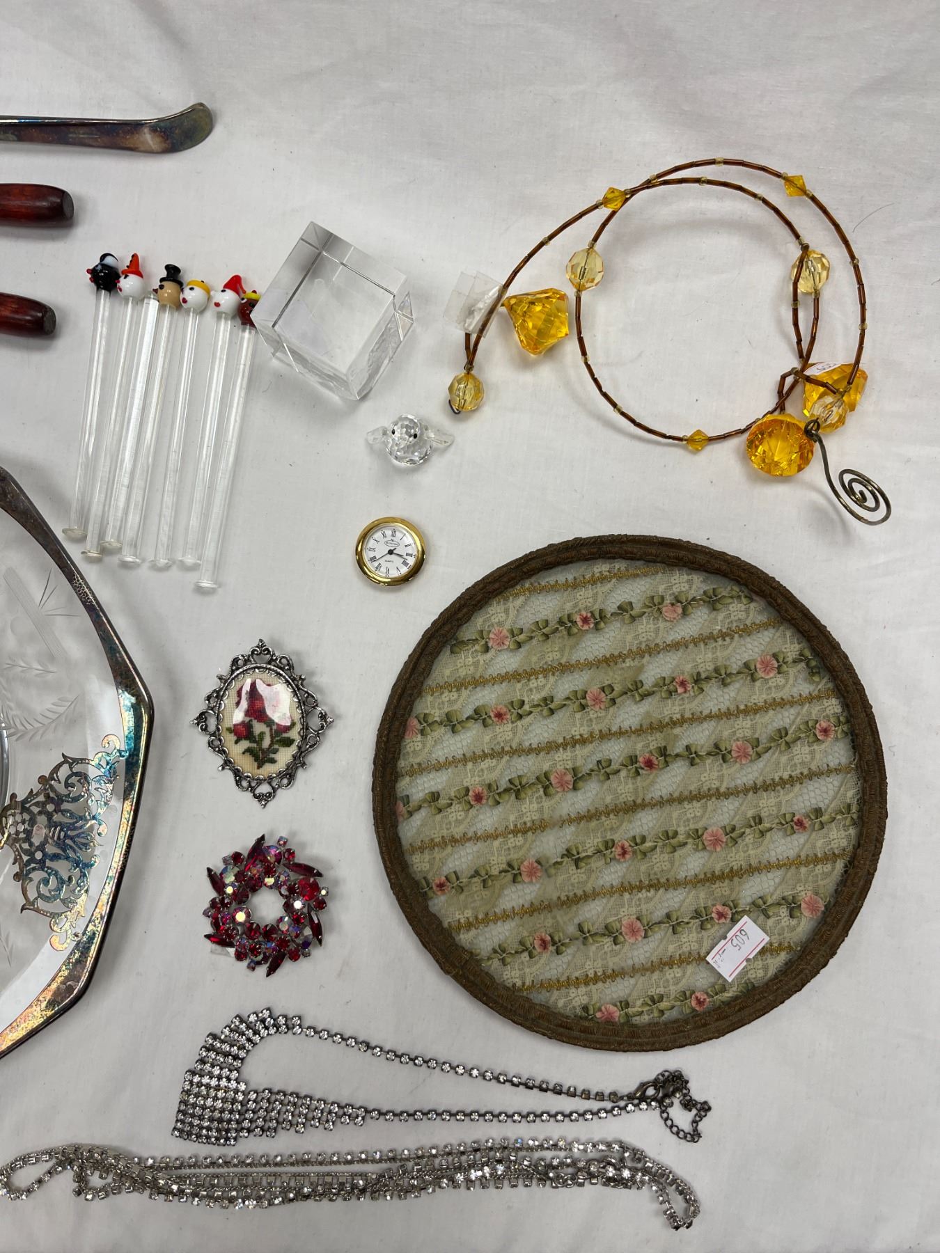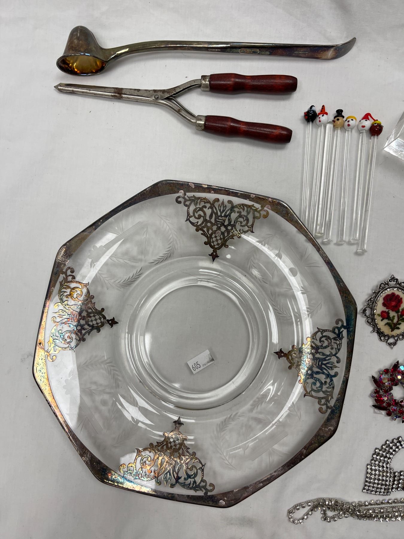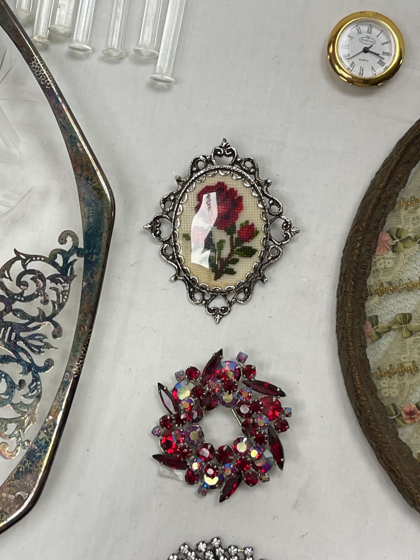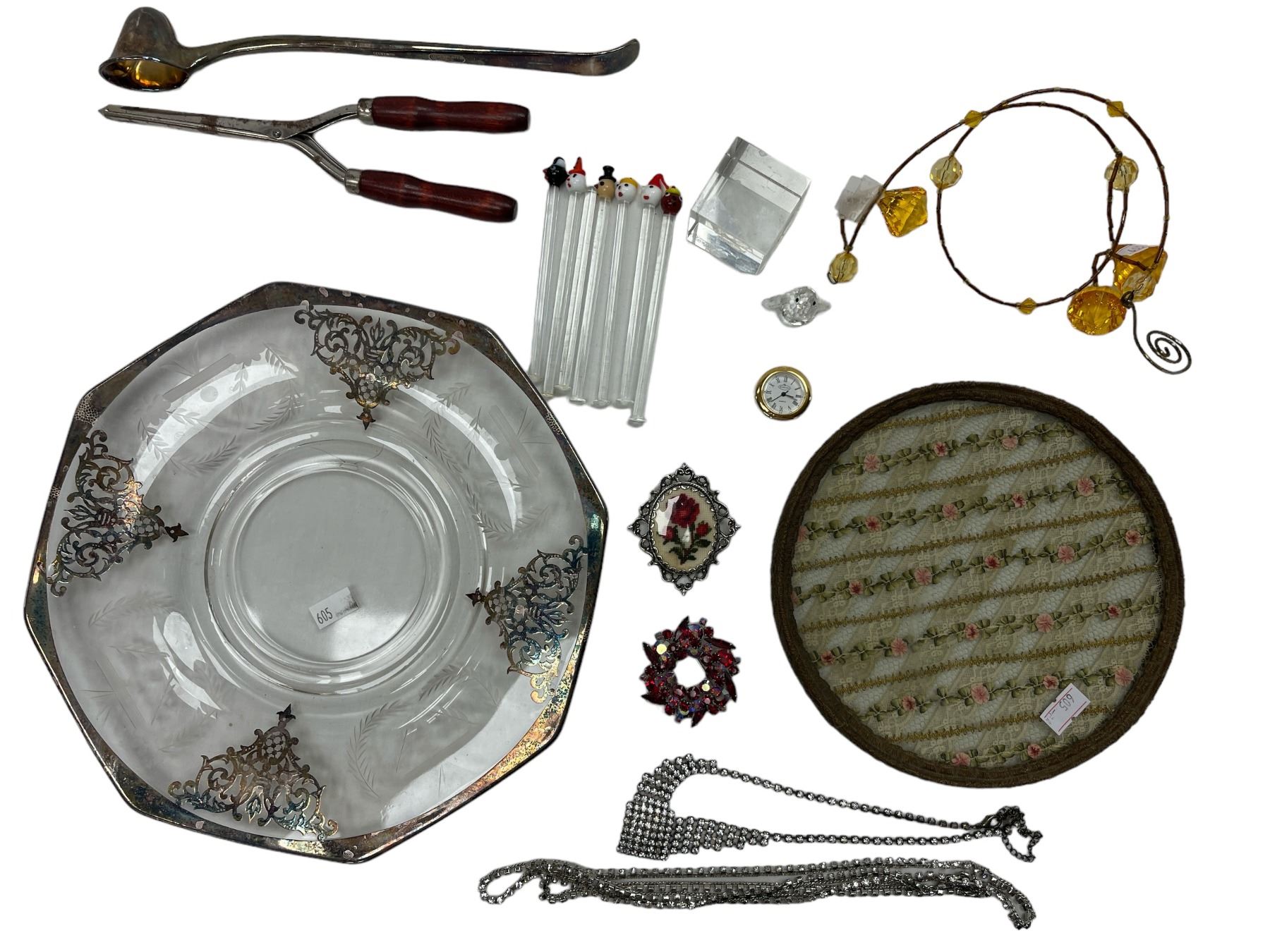 Assorted Antique And Vintage Collectibles: Curling Iron, Candle Snuffer, Jewellery, And More