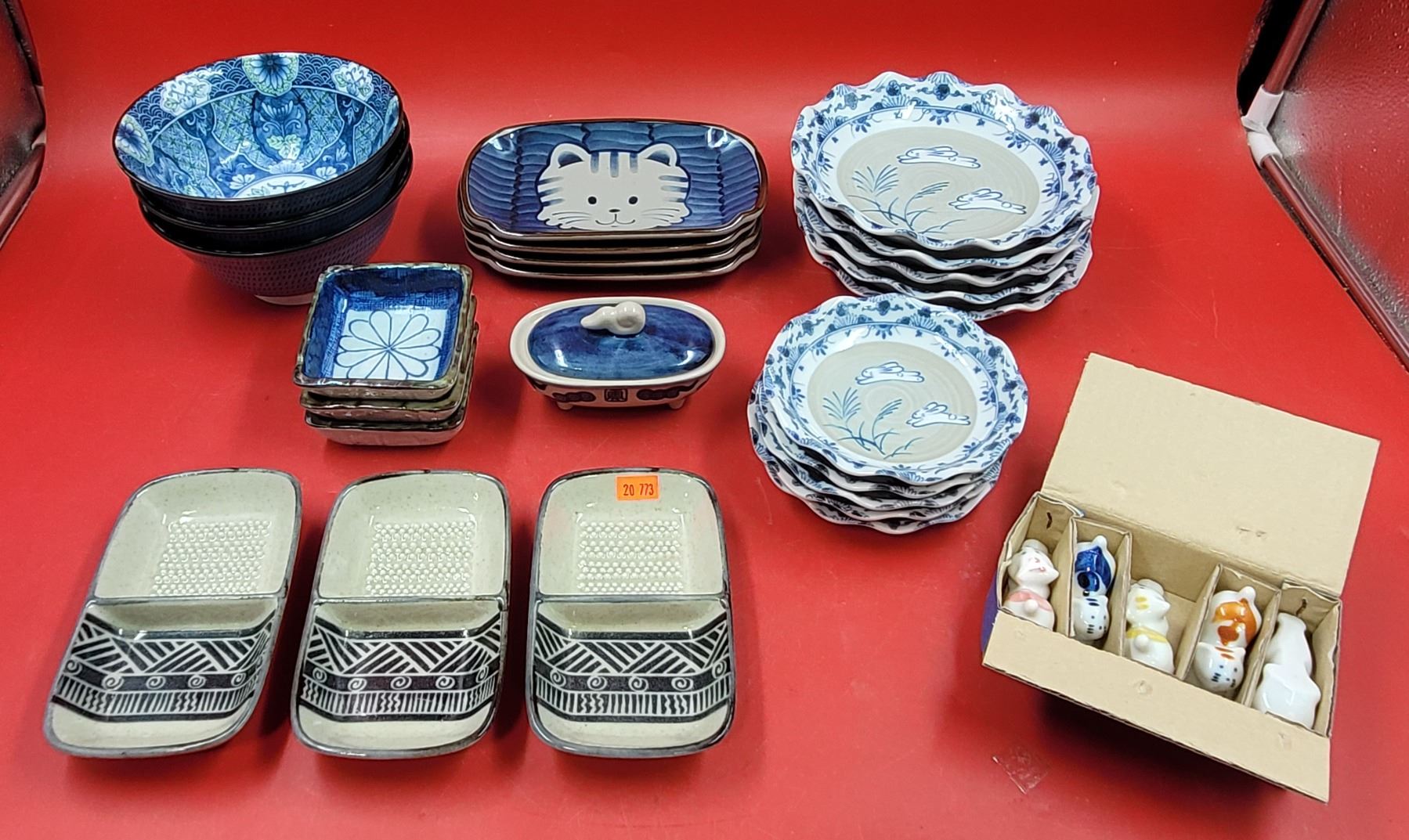 Assorted Asian Serving Dish Lot w/ Soy Sauce Dishes, Plates, Bowls, & More
