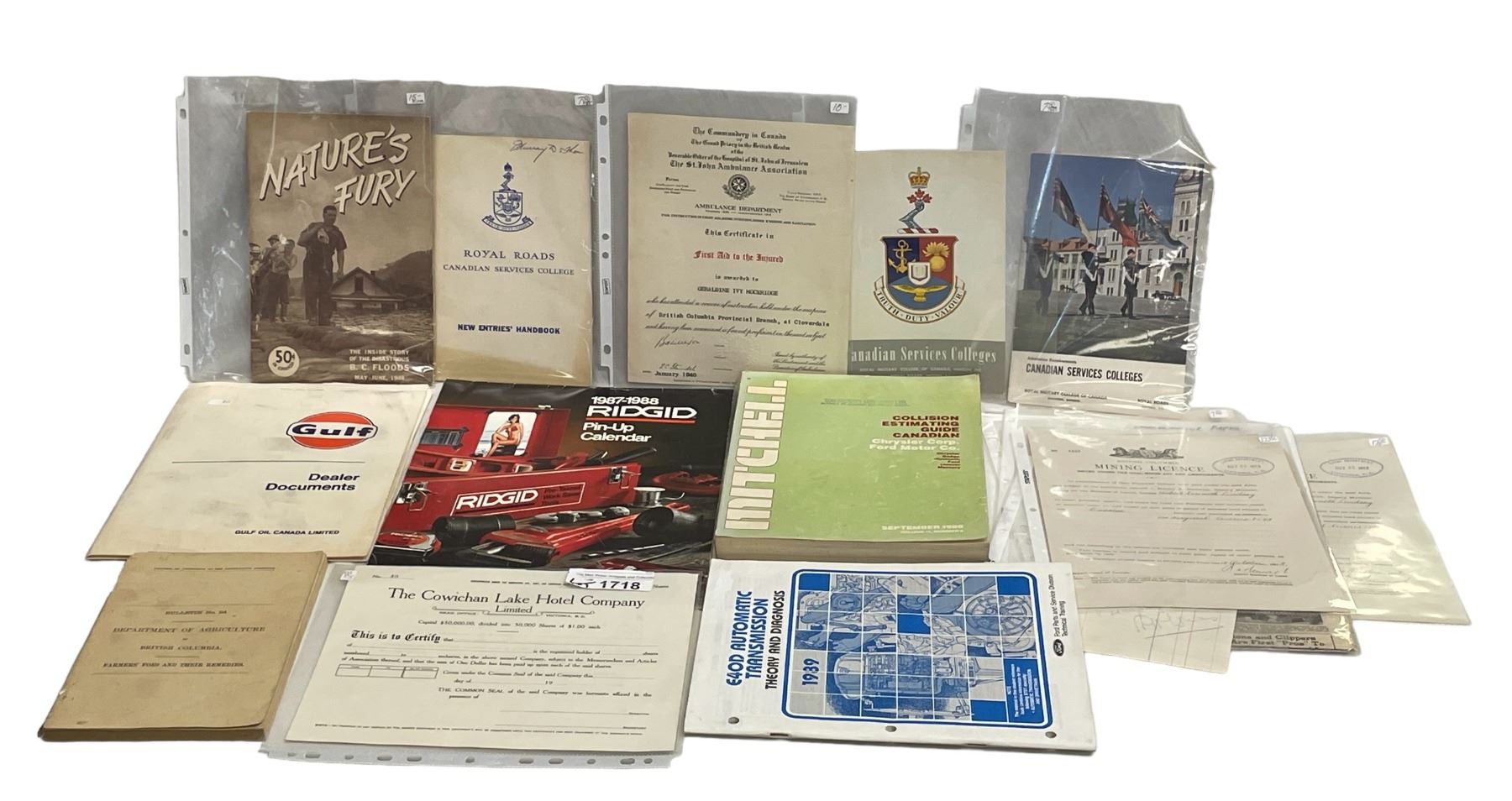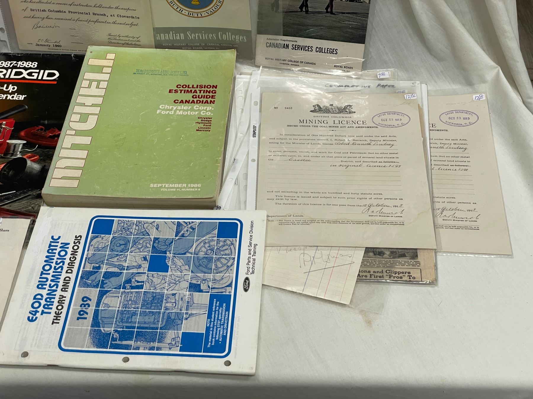 Assorted Automotive Ephemera, Golf Dealer Documents, Rigged Calendar, Collision Guide, Etc..