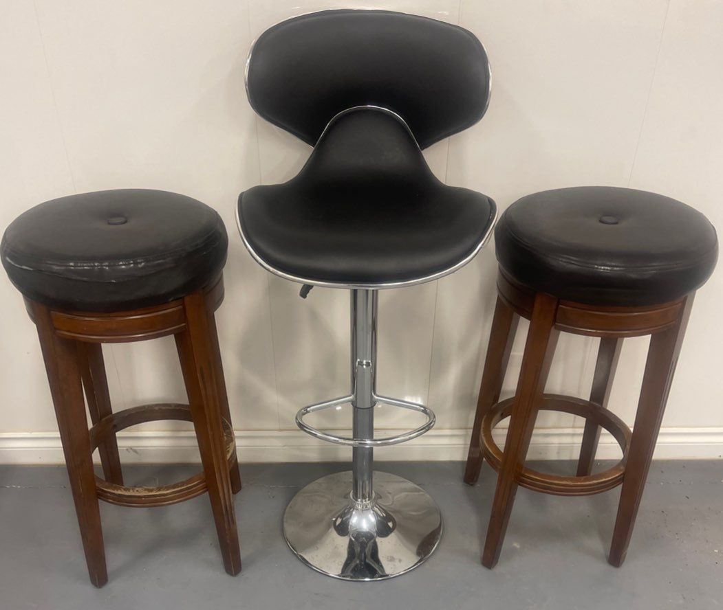 Assorted Bar Chairs Or Bar Stools Wooden Base & Chrome Base Chairs