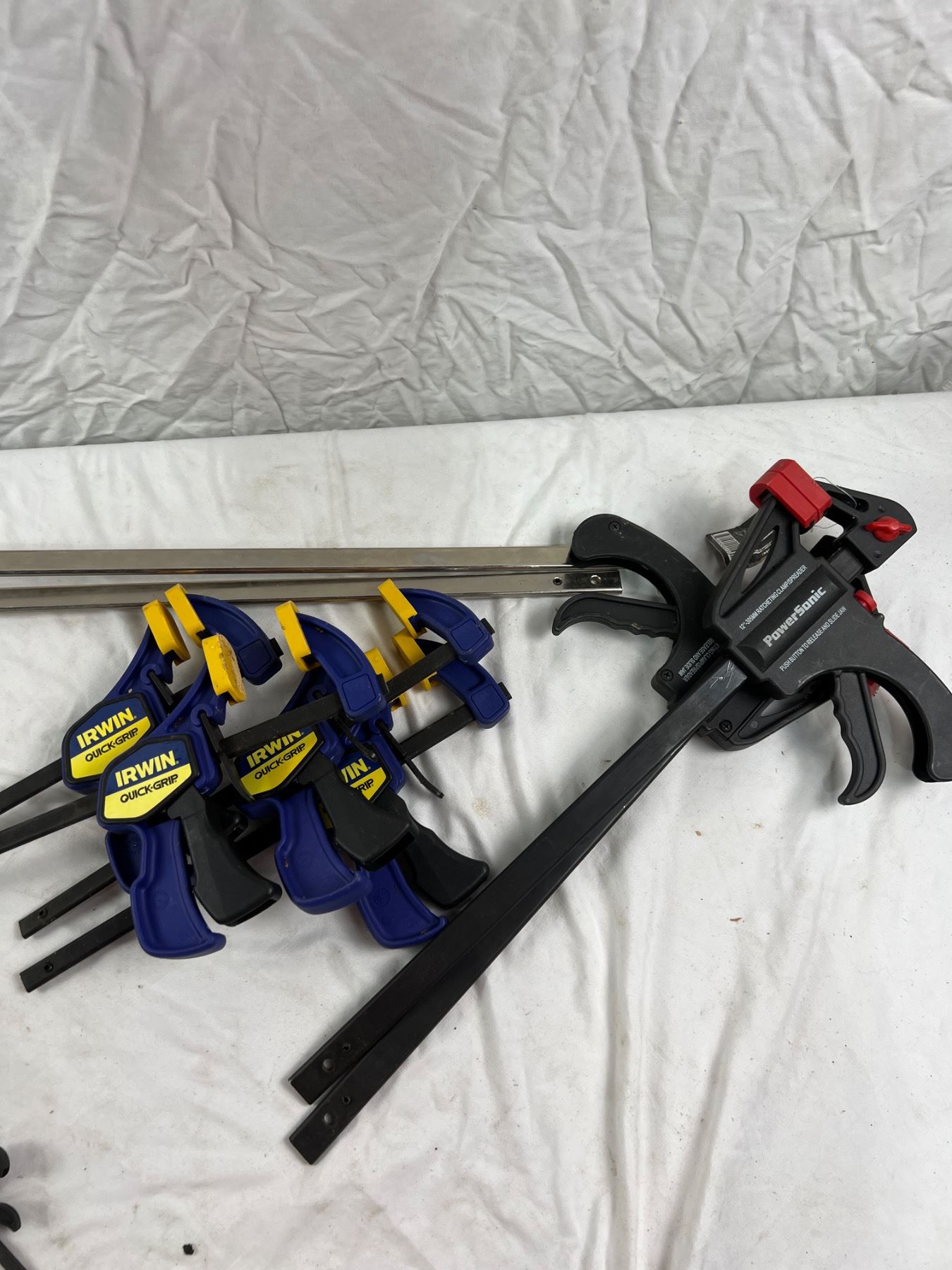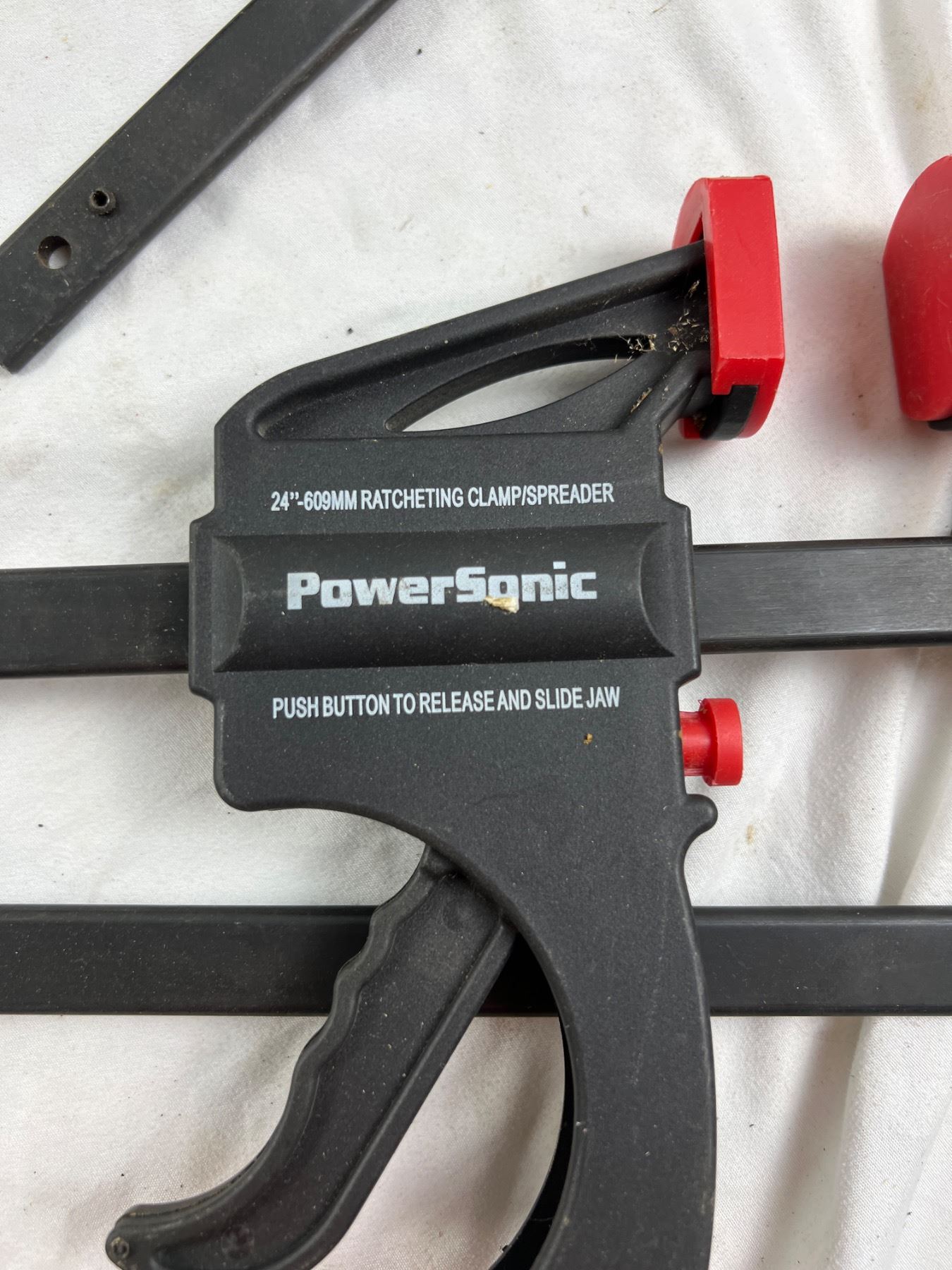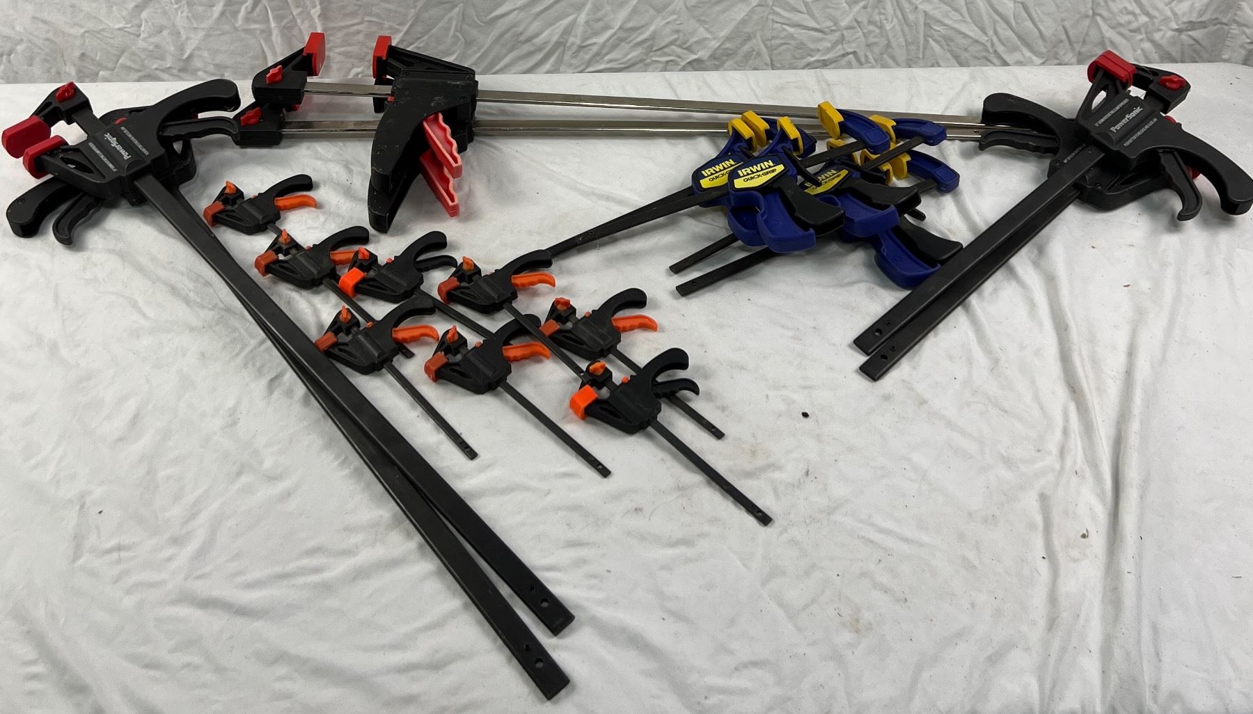 Largest clamps are 32" long. Brands include Powersonic and Irwin.