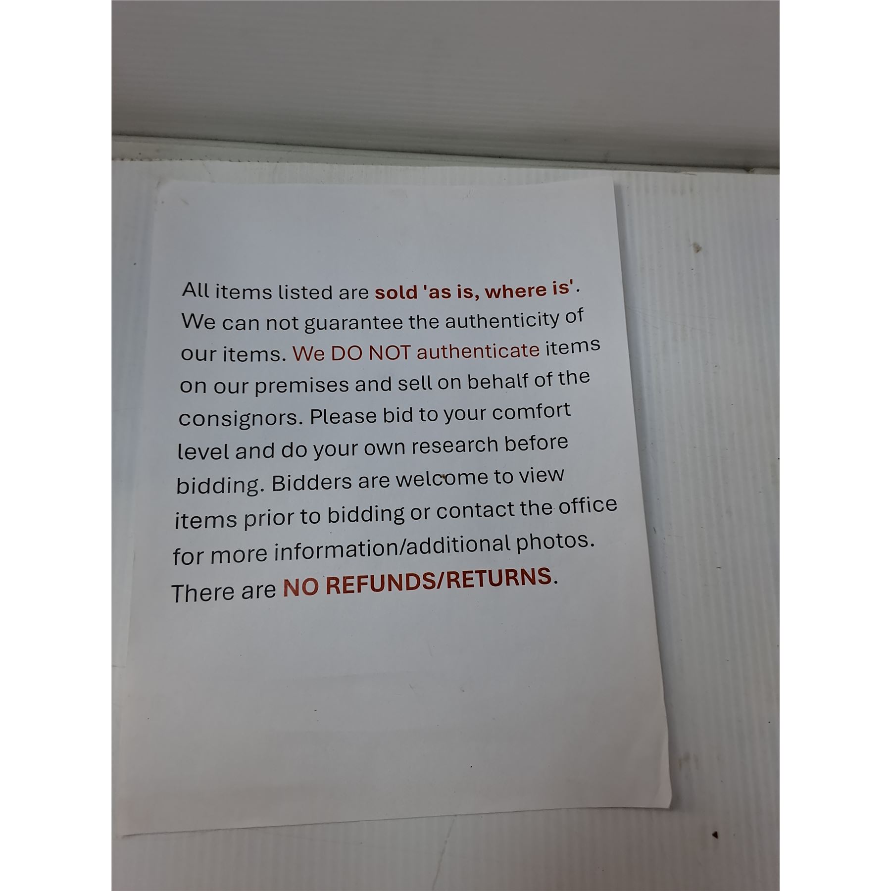 All advertising is a GUIDE ONLY. Buyers must satisfy themselves to the condition, identity and authenticity prior to bidding on an item and shall not make objections after the sale.