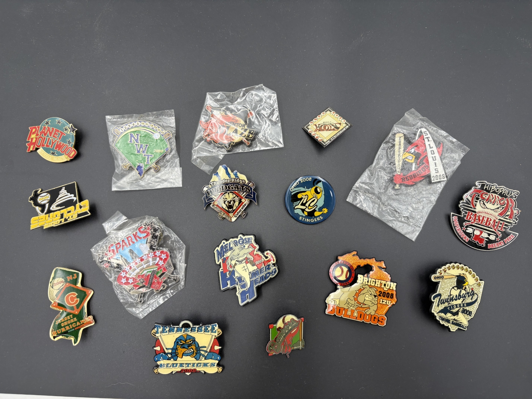 Assorted Baseball Pins (some in packaging) - 16 Total - Stingers - Brighton - Sparks - Planet Hollywood - Etc.