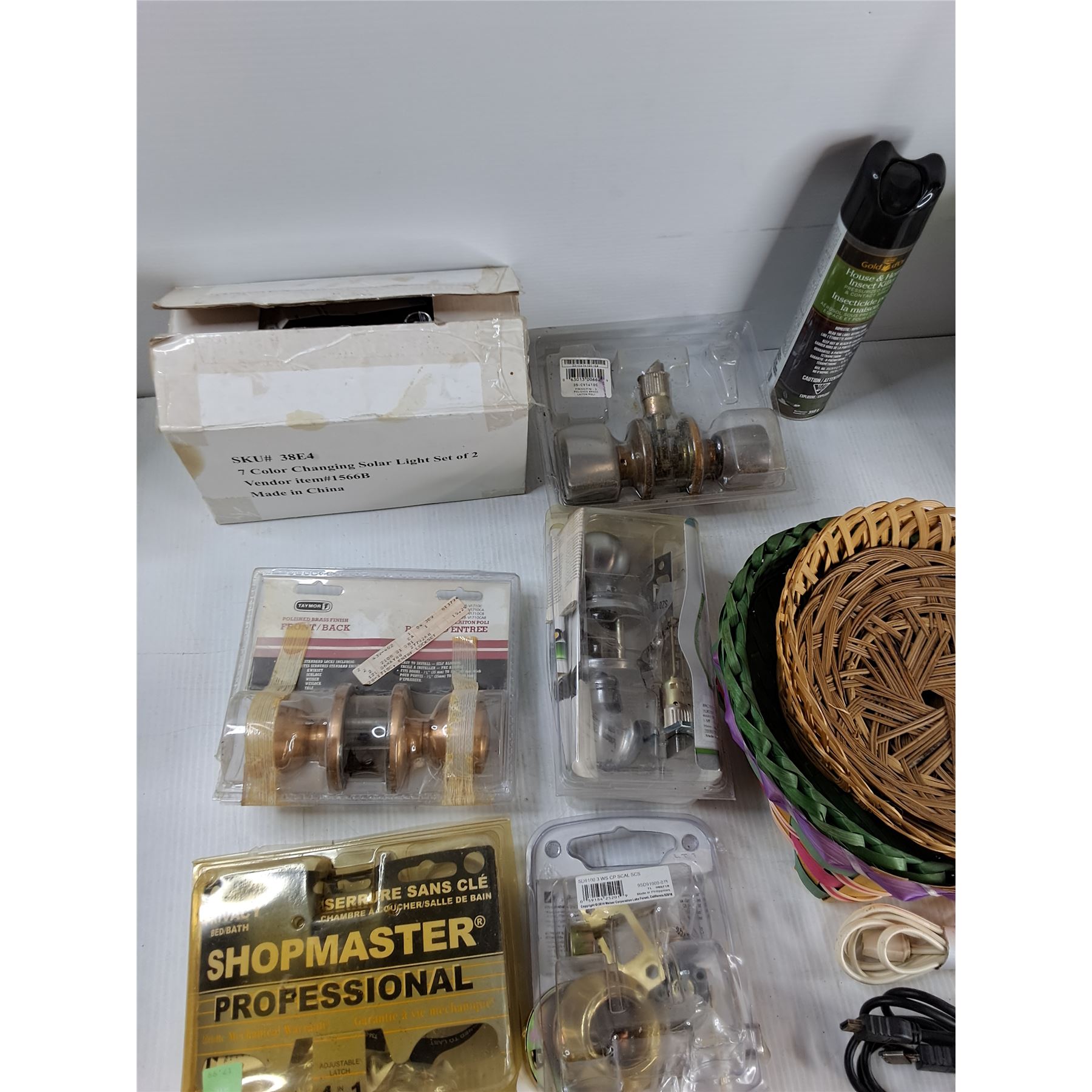 Assorted Baskets, (5) Door Knobs, Colour Changing Light Sets, Misc - As Is CANNOT SHIP