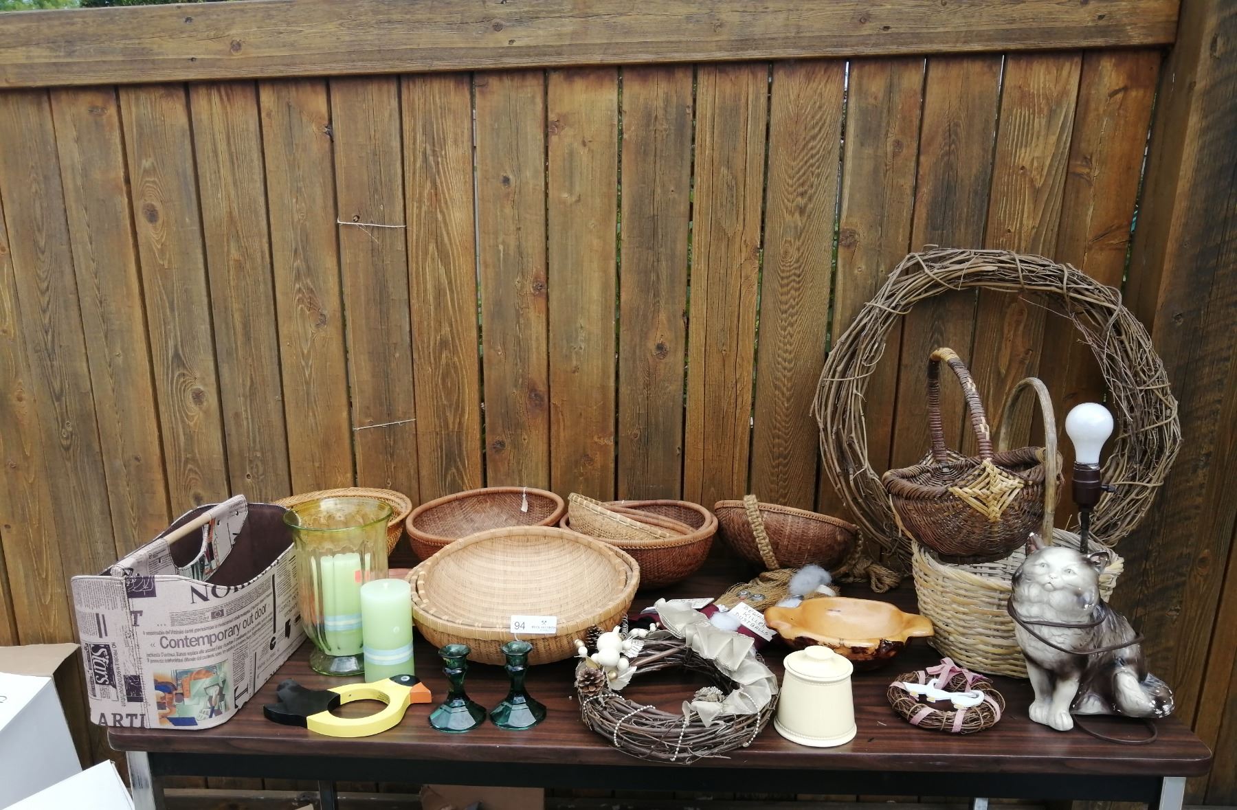 Includes magazine holder, cat lamp, candles, candle holders, baskets, and more!
