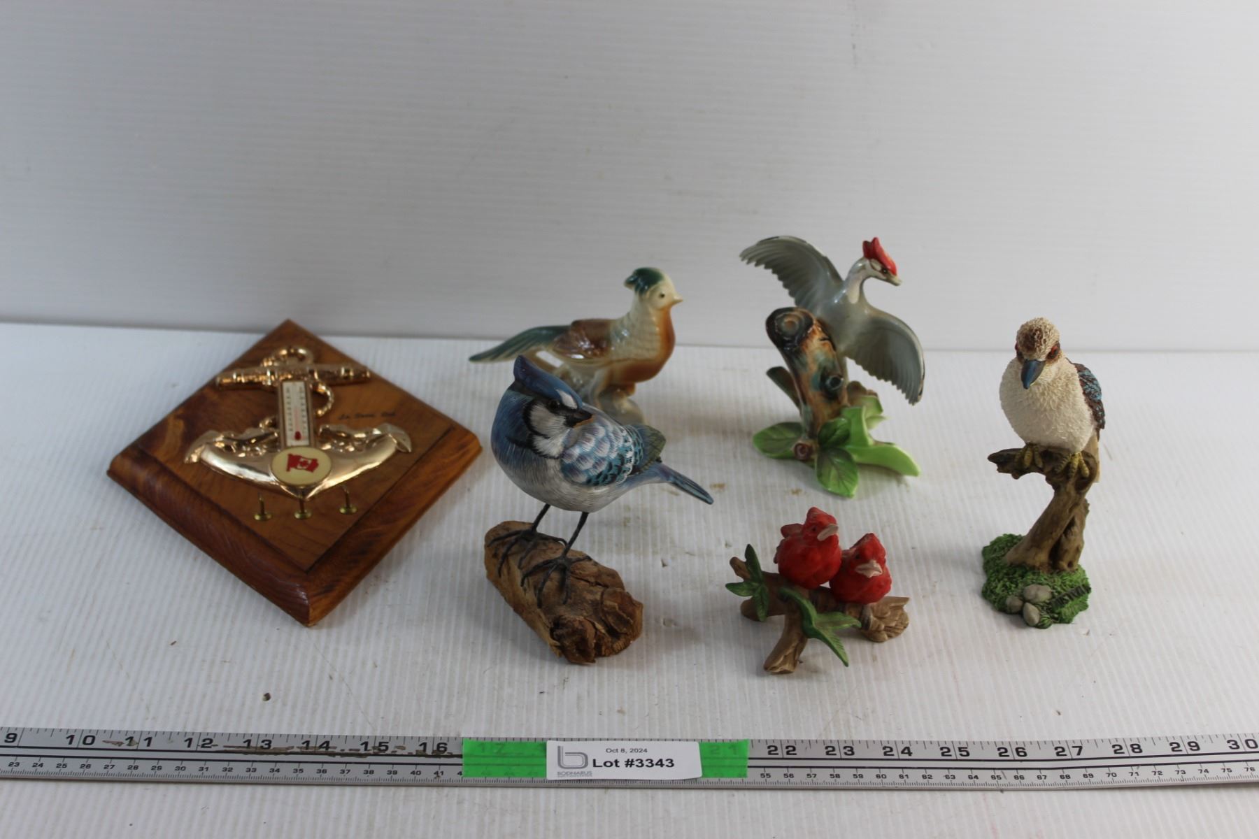 Assorted Birds Decorations and Wooden Anchor Shaped Thermometer/Key Holder