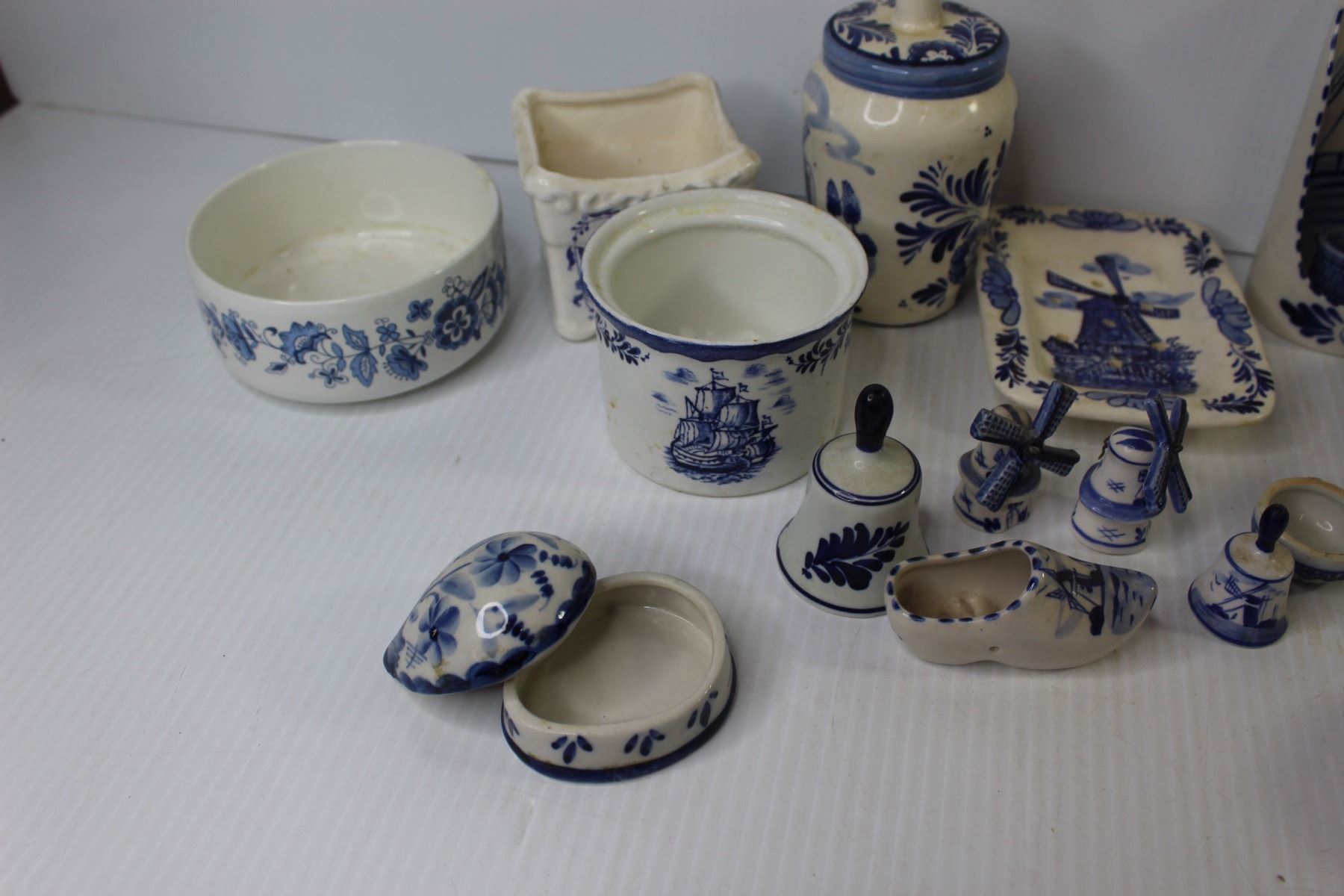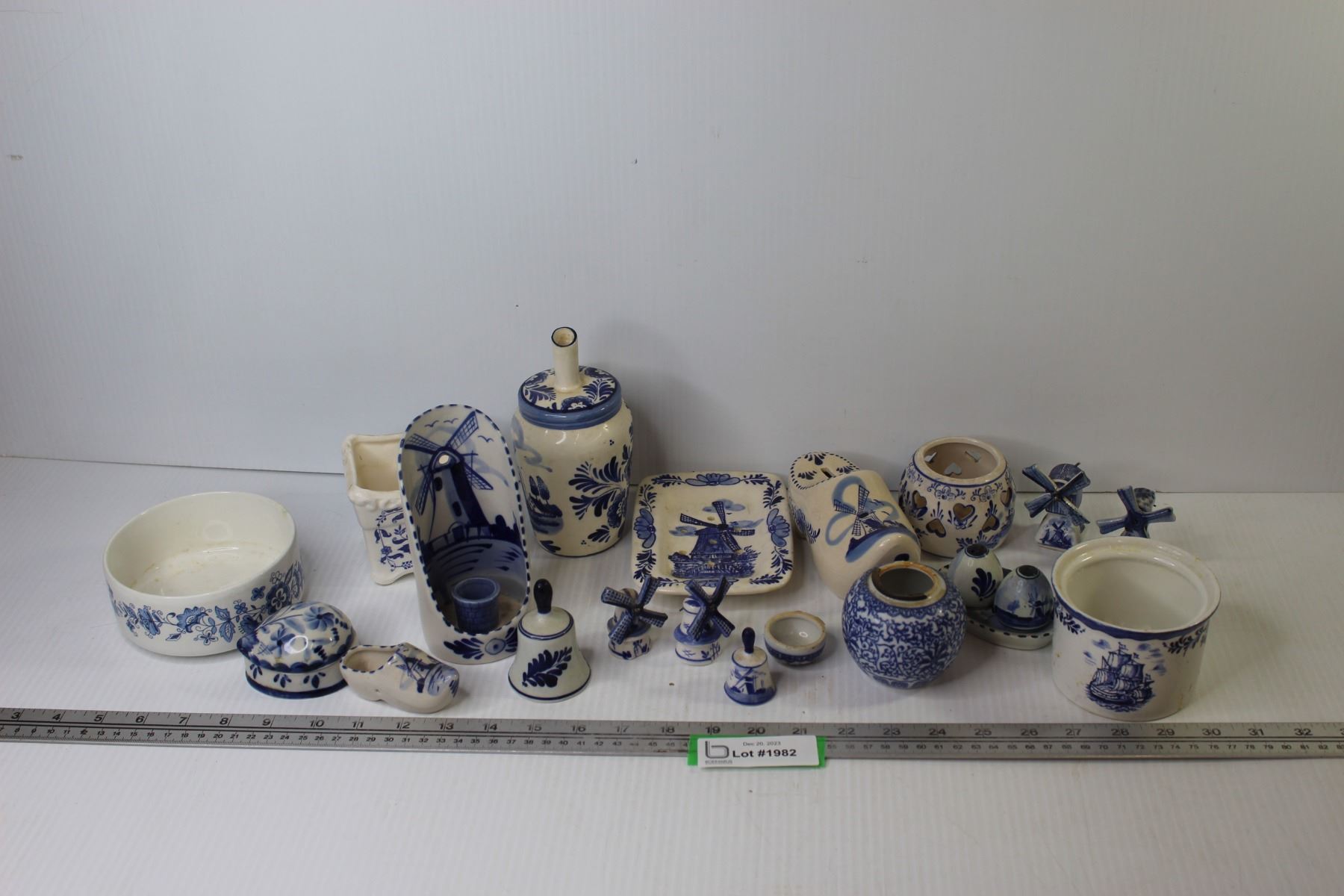 Assorted Blue Delft Ceramic Pieces - Salt Shaker - Soap Dish - Bells - Candle Holder