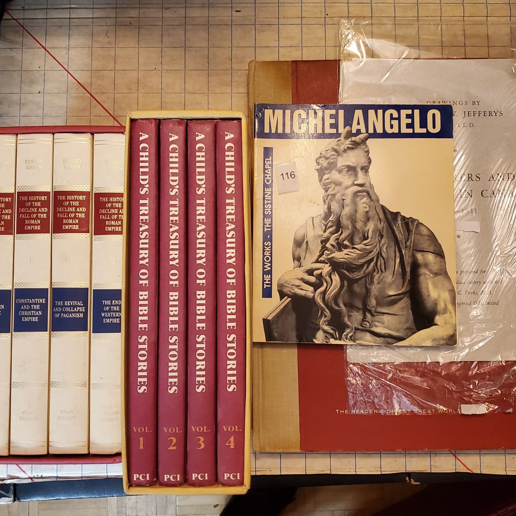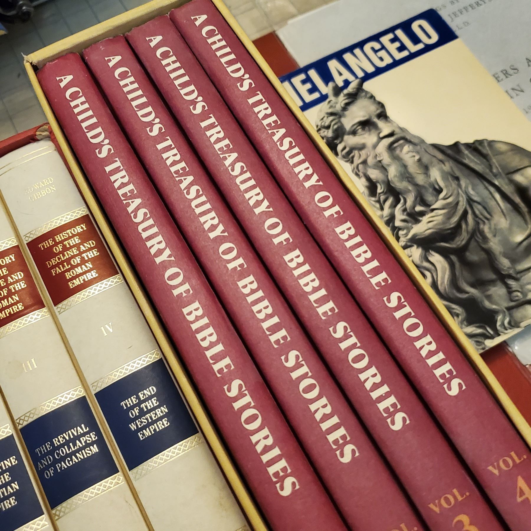 Assorted Books, 2 sets Bible stories/History, drawings, Atlas