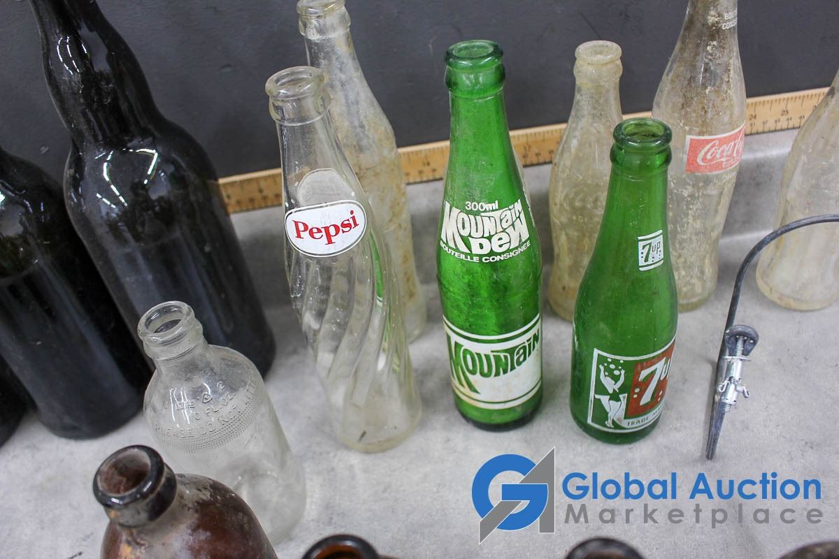Assorted Bottles & Vogue Tobacco Tin