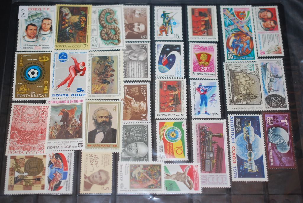 Assorted CCCP/USSR Postal Stamps; Various Dates, Amounts, Events, People, Etc.; Lot of 65 Stamps; EST. $10-20