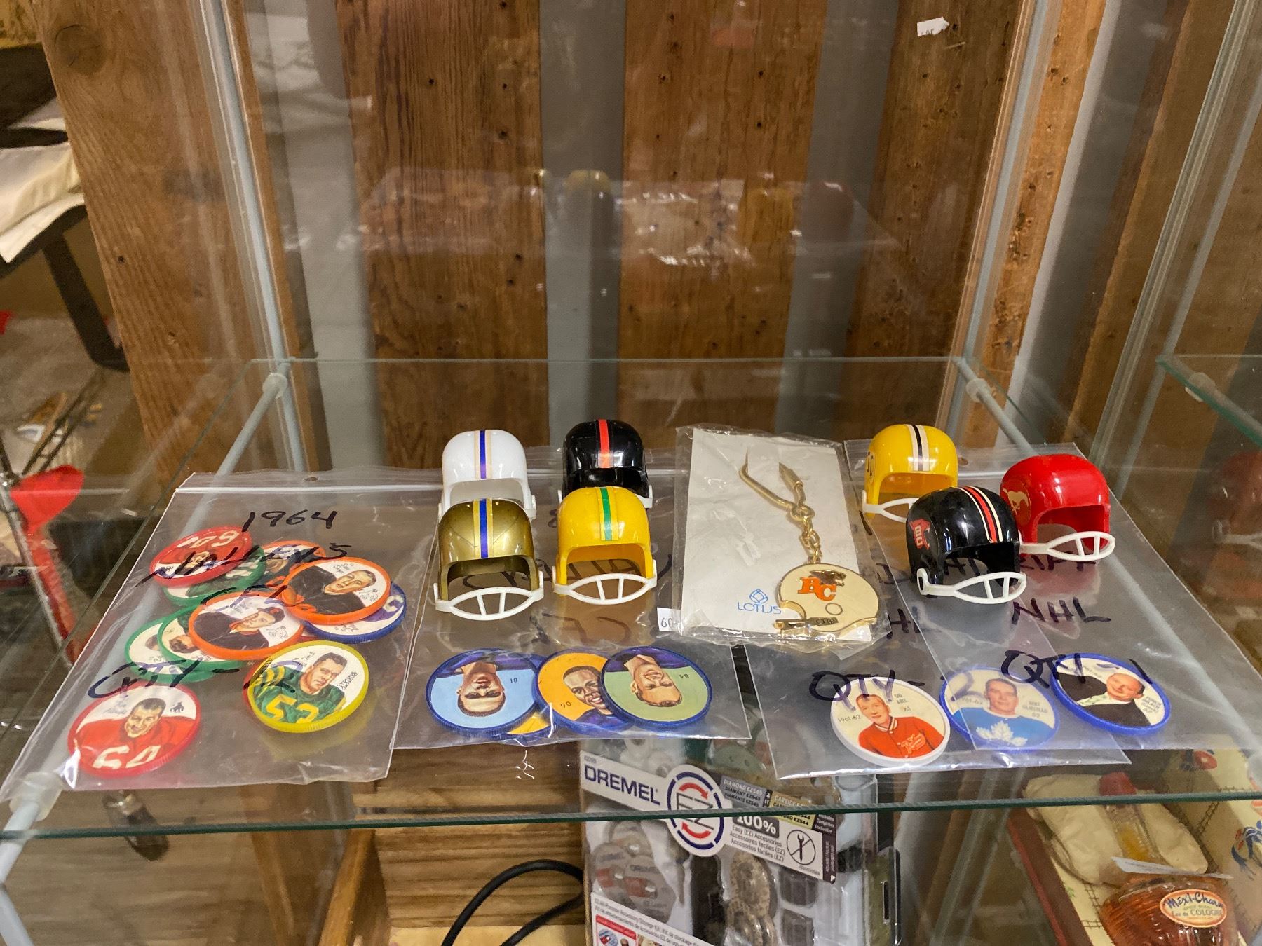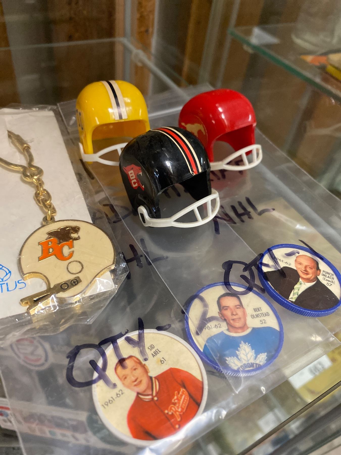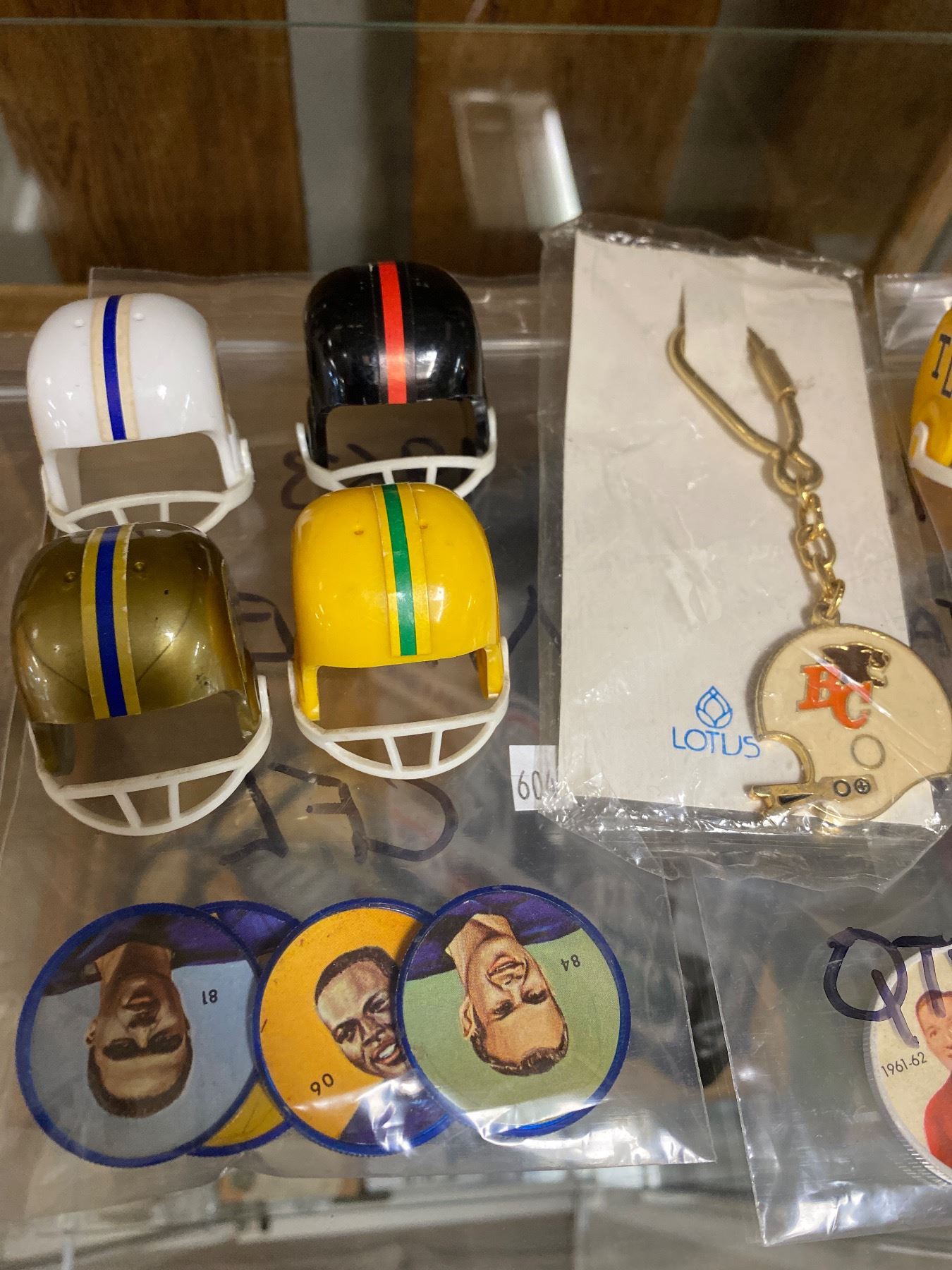 Assorted Cfl Collectibles, Coins, Miniature Helmets, B.C Lions Keychain, Etc..