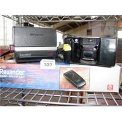 Three Pieces Electronics; Polaroid Camera, VHS Rewinder, and Minolta Freedom 100 Camera with Case.