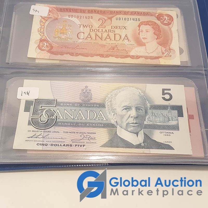 One 1937, Two 1974, Five 1986, Ten 1954, Twenty 1976 and Fifty 1988