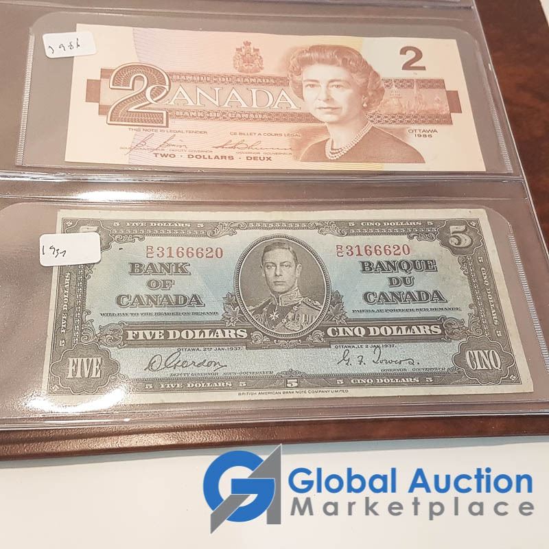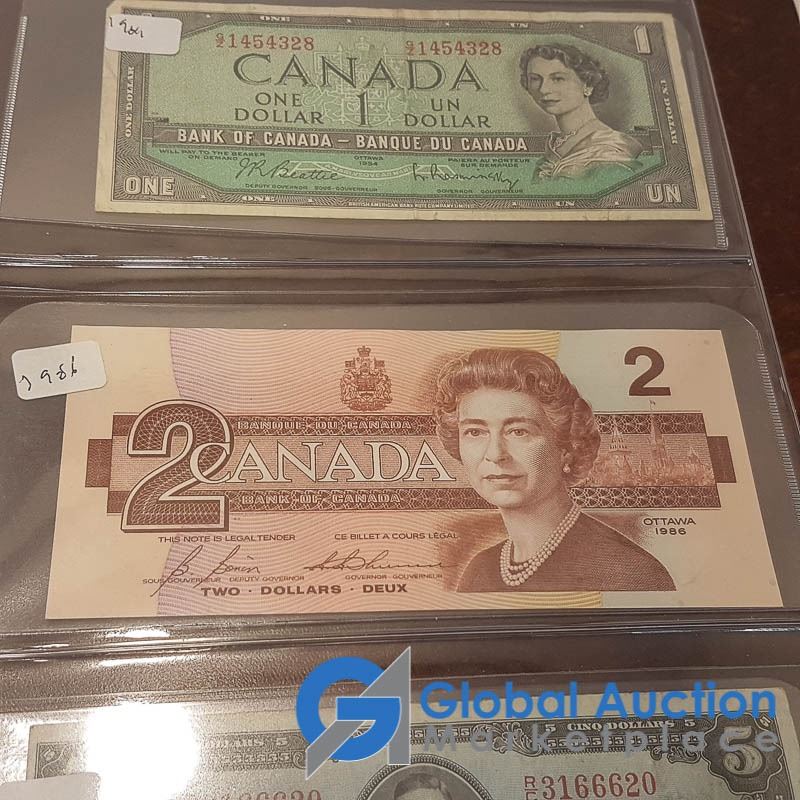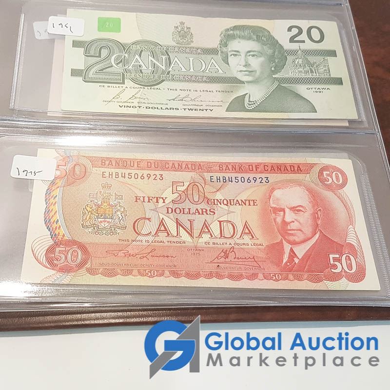 One 1954, Two 1986, Five 1937, Ten 1971, Twenty 1991 and Fifty 1975
