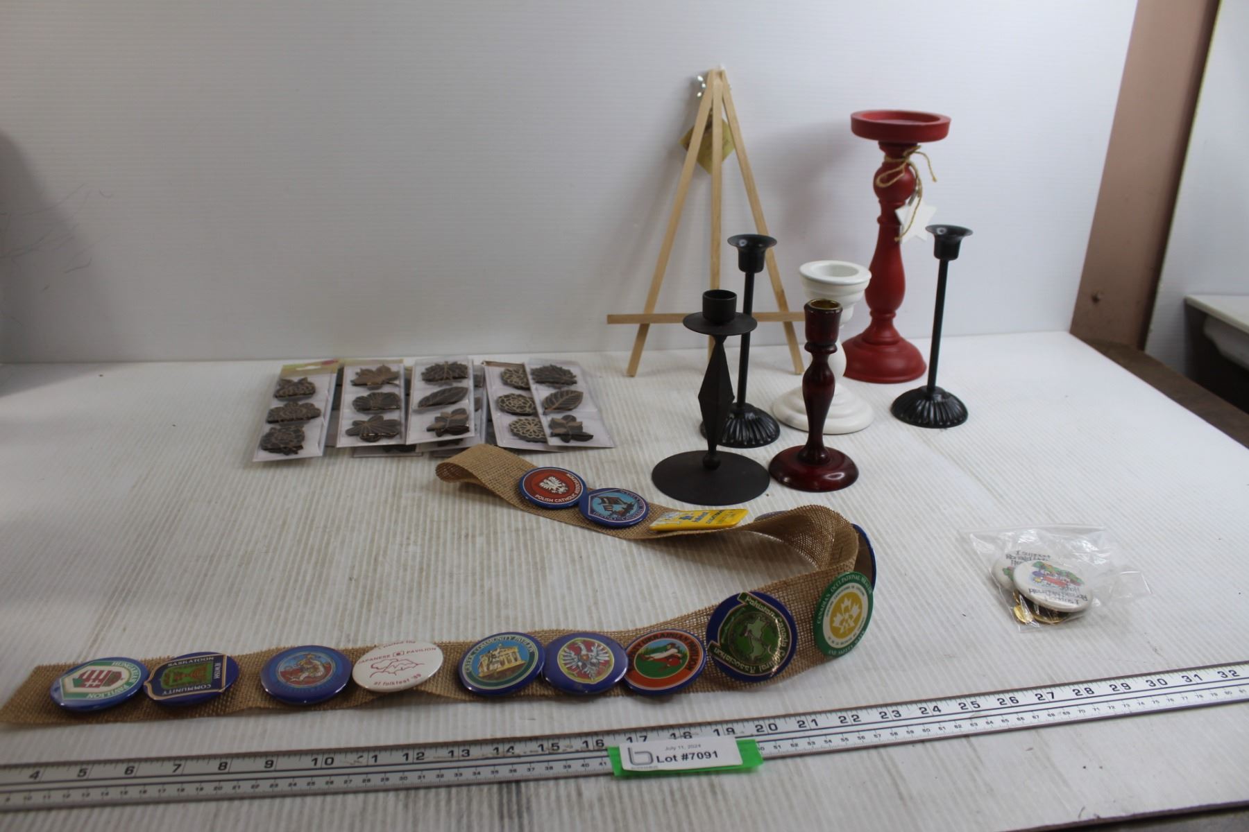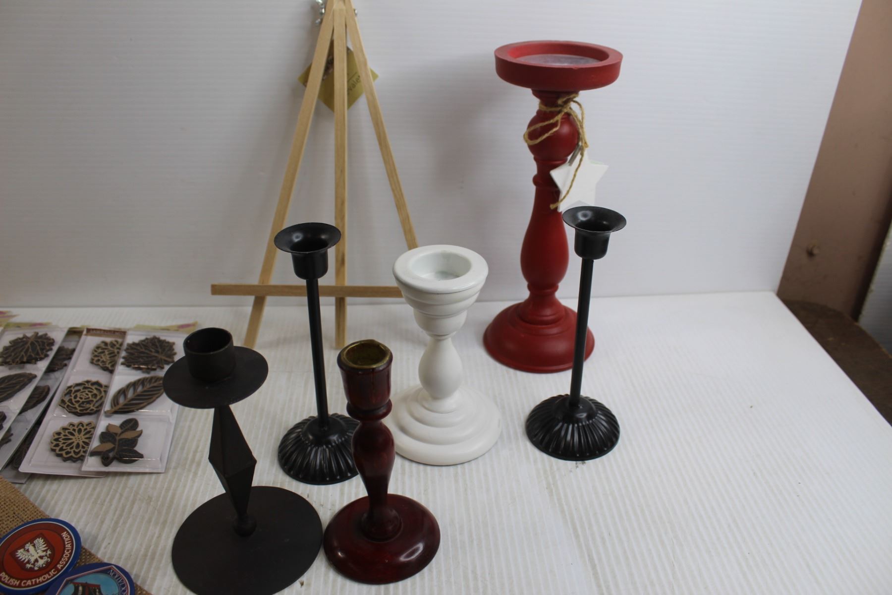 Assorted Candleholders, Pins, Misc