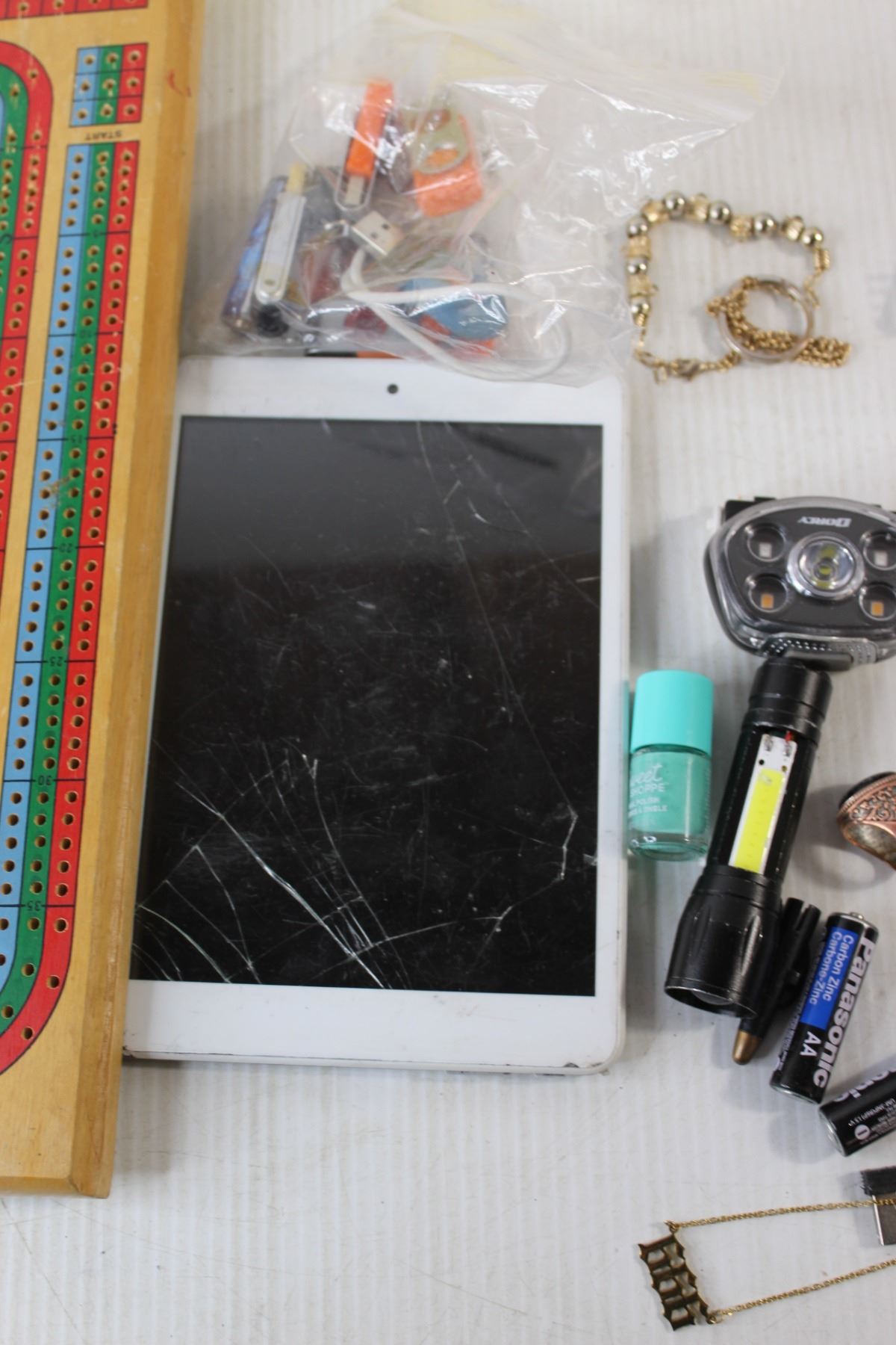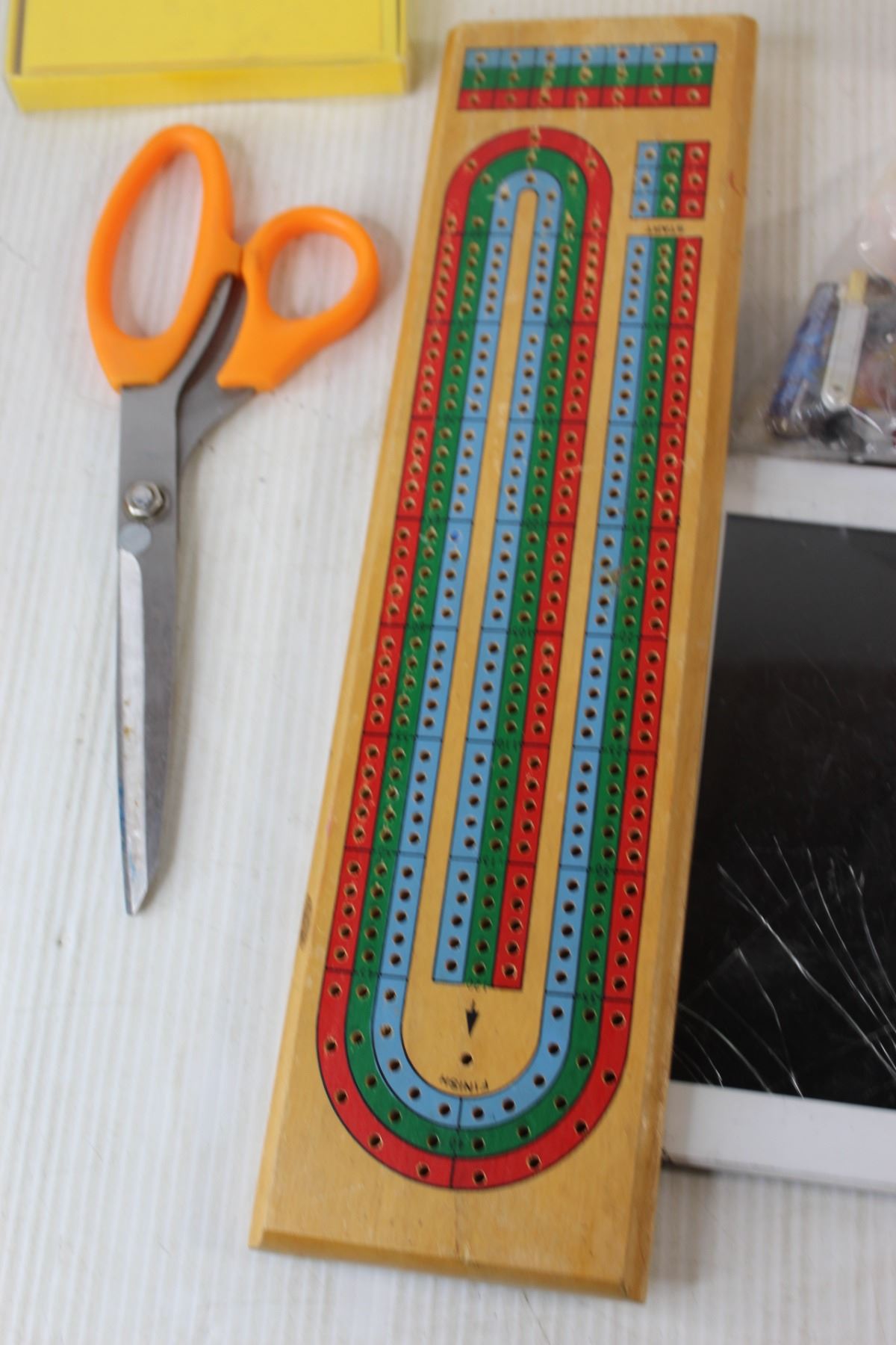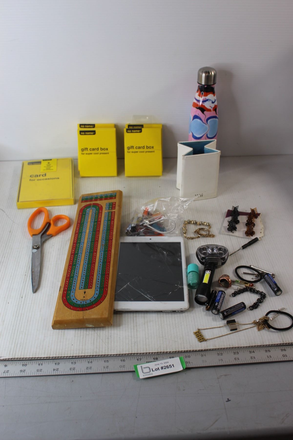 Assorted Card Boxes, Insulated Water Bottle, Cribbage Board, Tablet, Misc.