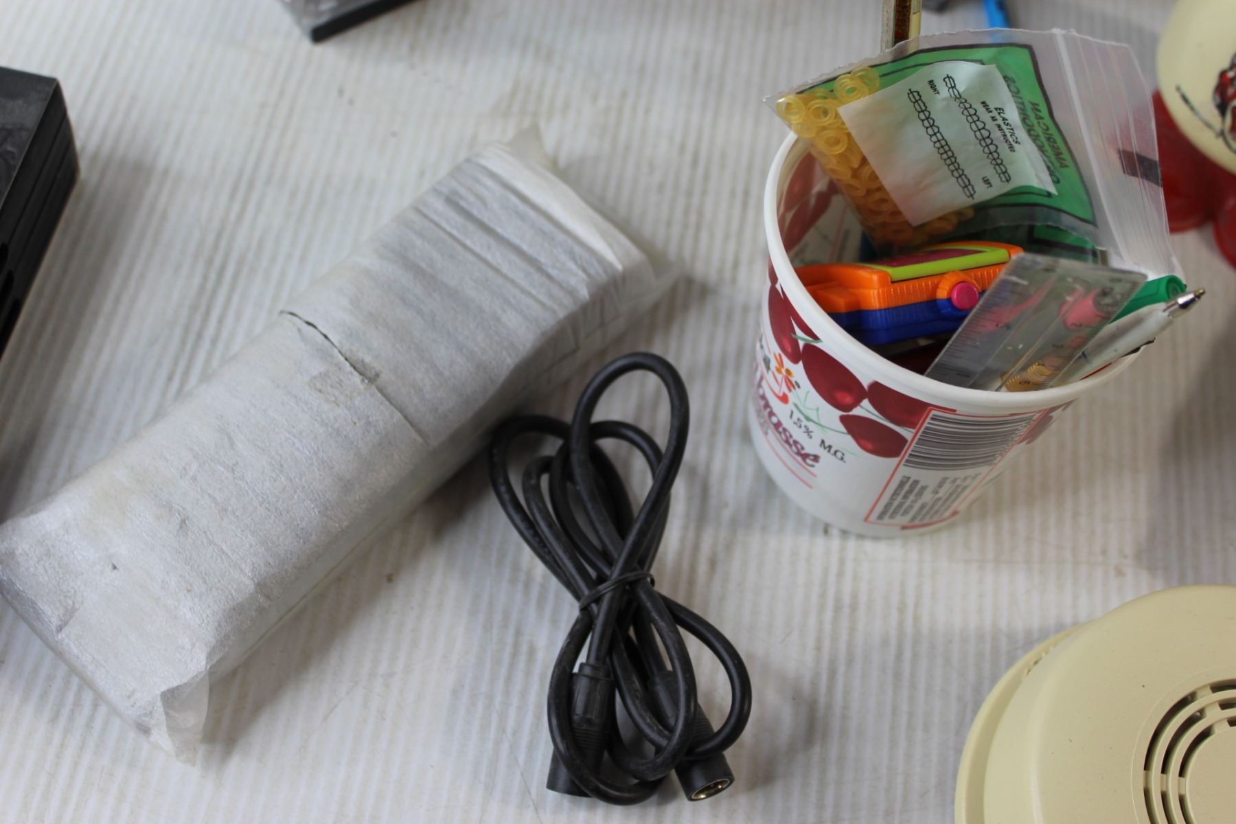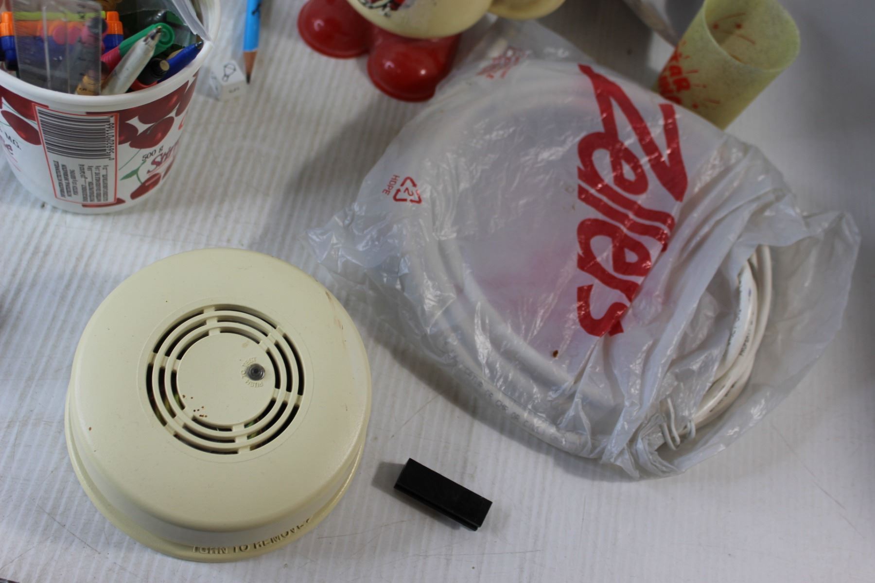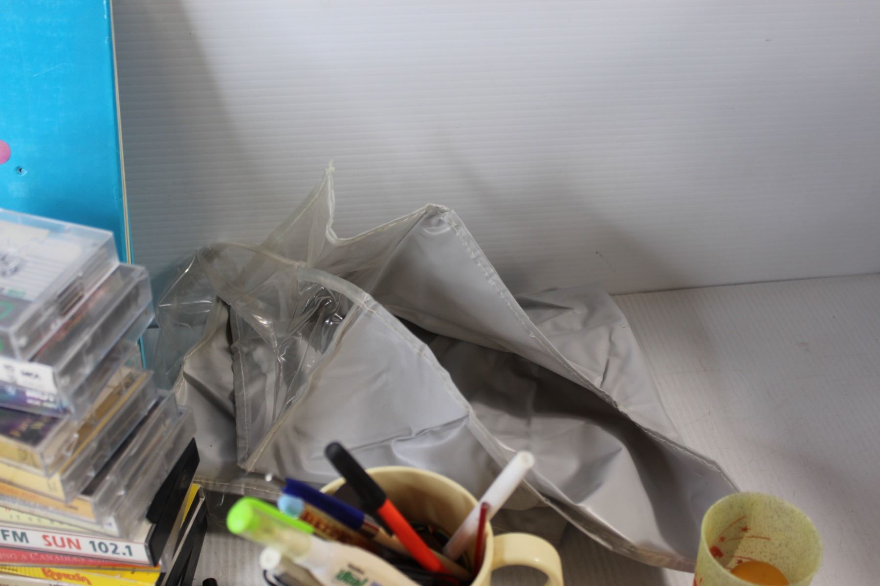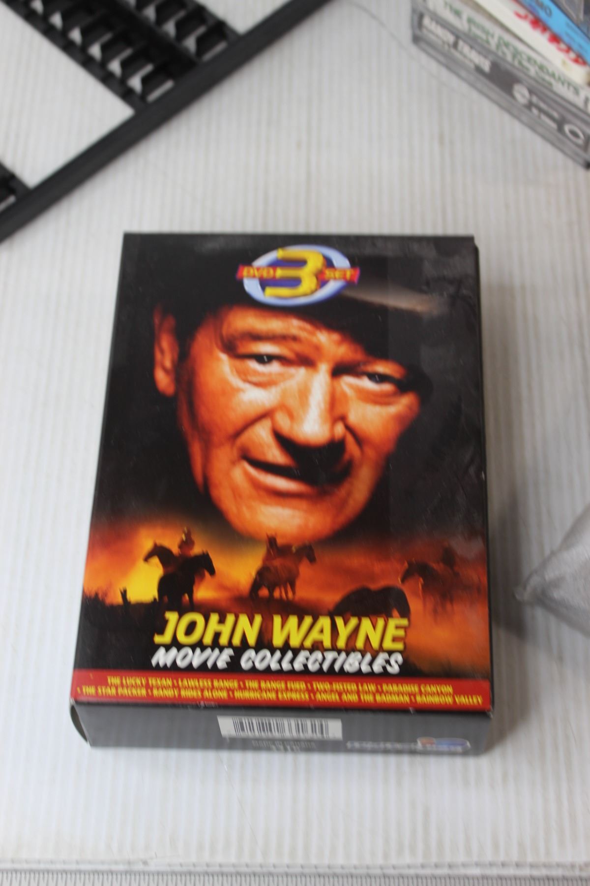 Assorted Cassettes, Pens, John Wayne DVD's, Smoke Detector, Misc.