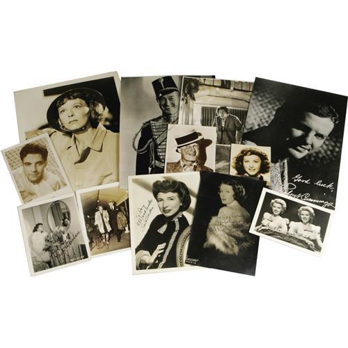 <B>Assorted Celebrity Postcards and Signed Photos.</B></I> Included are vintage postcards featuring Maurice Chevalier, Paulette Goddard, and Ramon Navarro; vintage b&w 8" x 10" promo stills of Chevalier, Robert Cummings, J. Connor Nash, and Margaret Sullivan; b&w 5" x 7" signed photos of Sara Haden and Danielle Darrieux; a pair of b&w 4" x 5" signed photos of Trudy Marshall; and a b&w 3.5" x 5" signed photo of Lee and Lyn Wilde. In overall Very Fine condition with mild wear and tanning.<BR><BR><b>Shipping:</b> Flat Material, Small (<a target="_blank" href="http://www.heritageauctions.com/common/shipping.php">view shipping information</a>)
