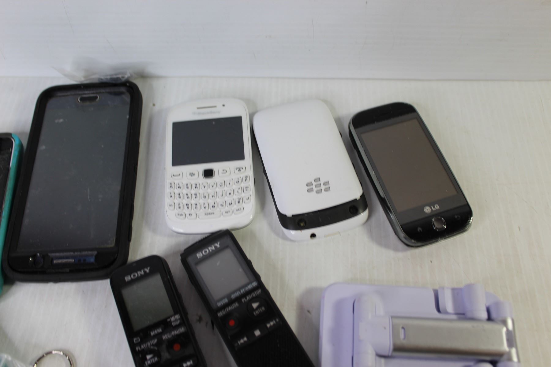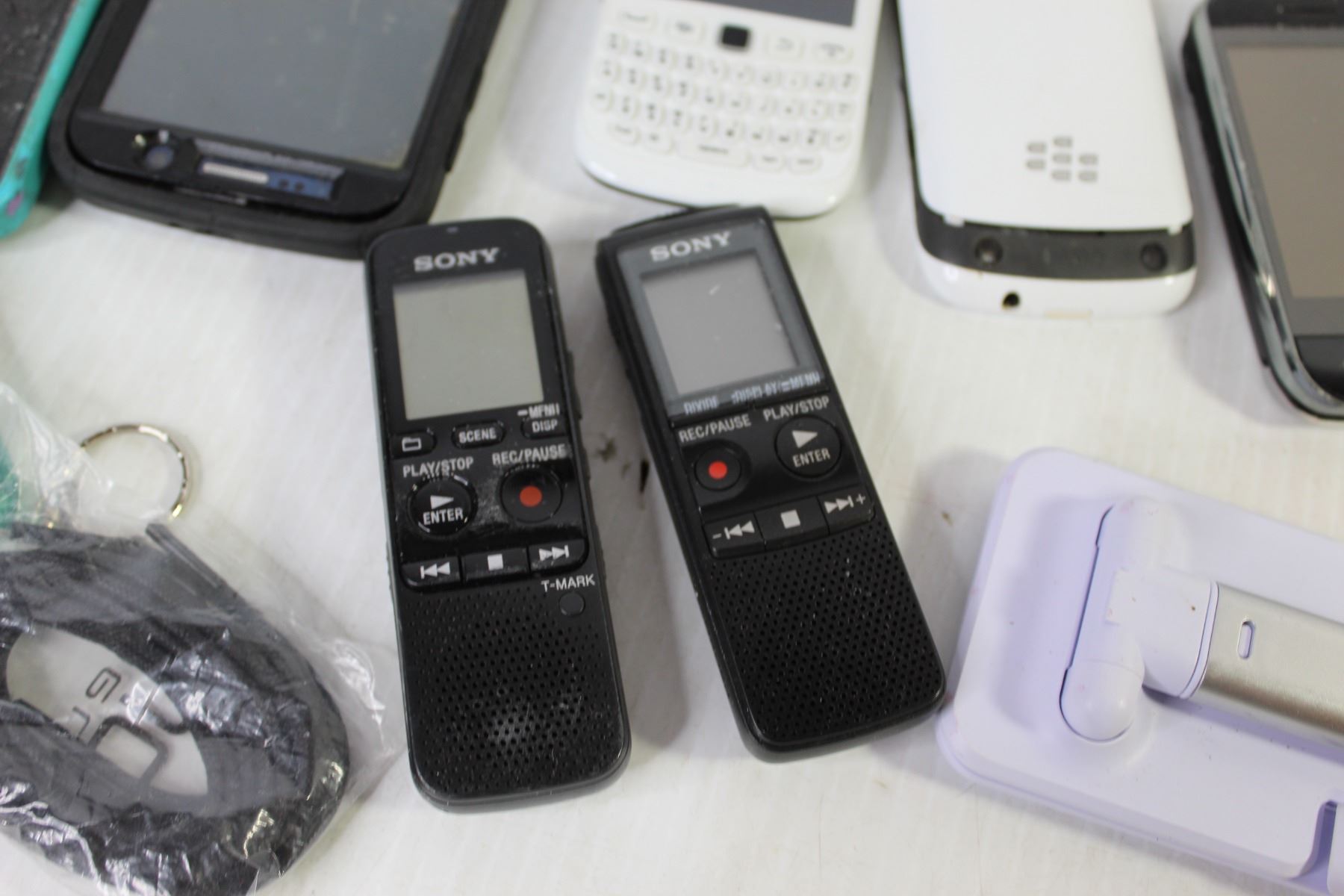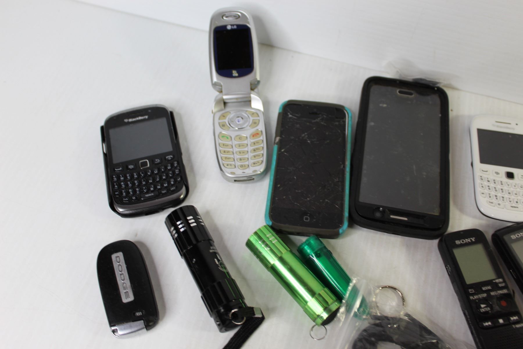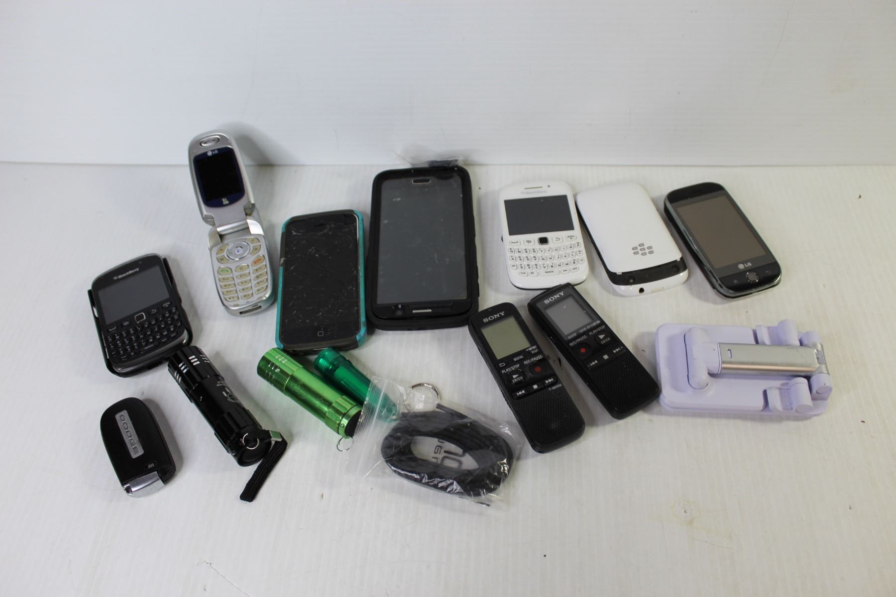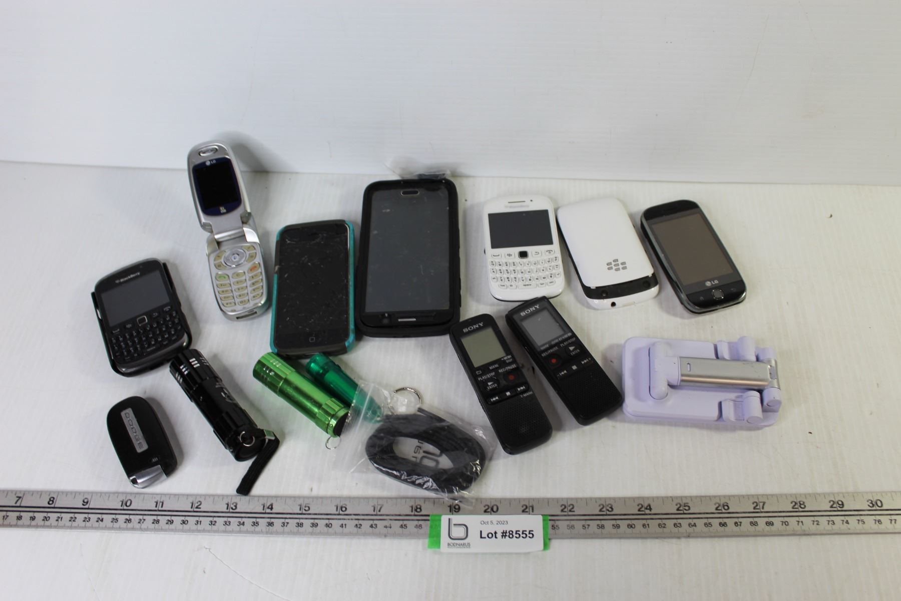 Assorted Cell Phones - Flashlights - (2) Sony Recorders (untested)