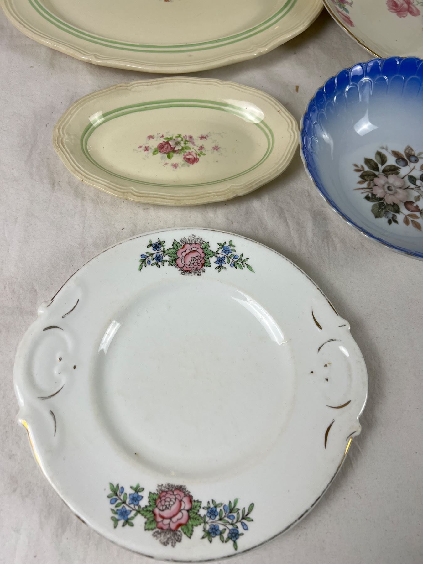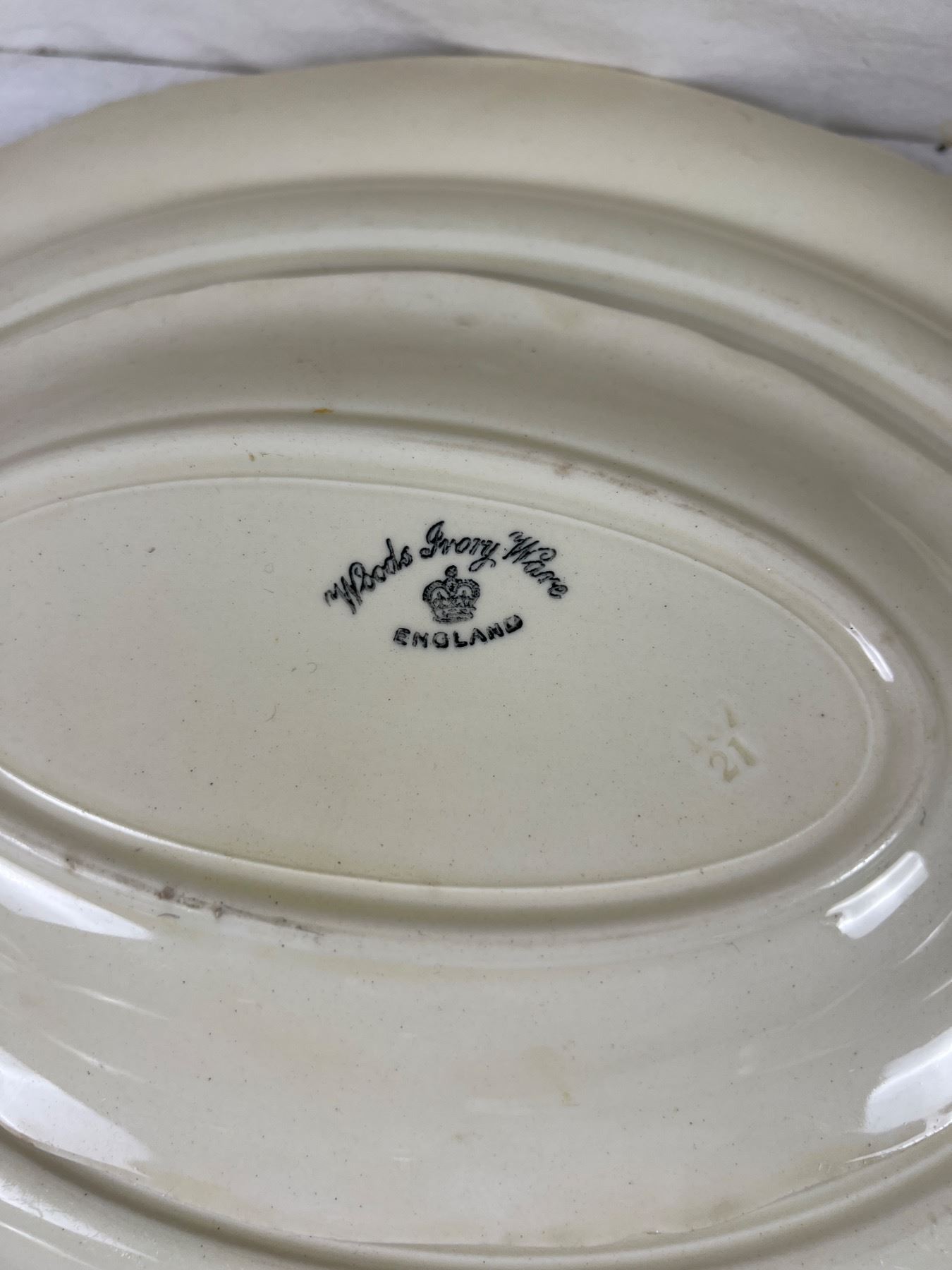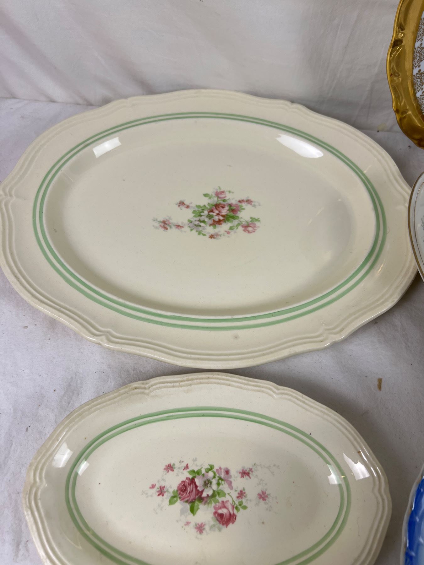 Largest platter is 14" by 11". Some fade of paint/discolouration to pieces.