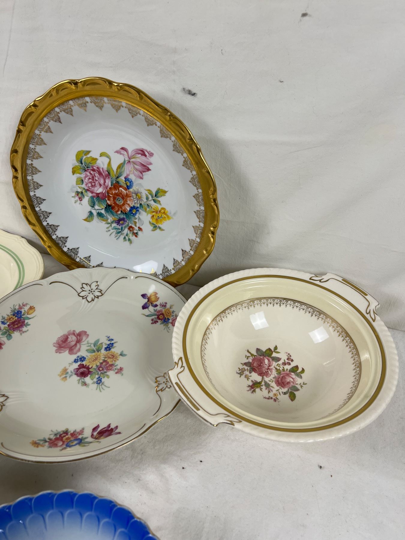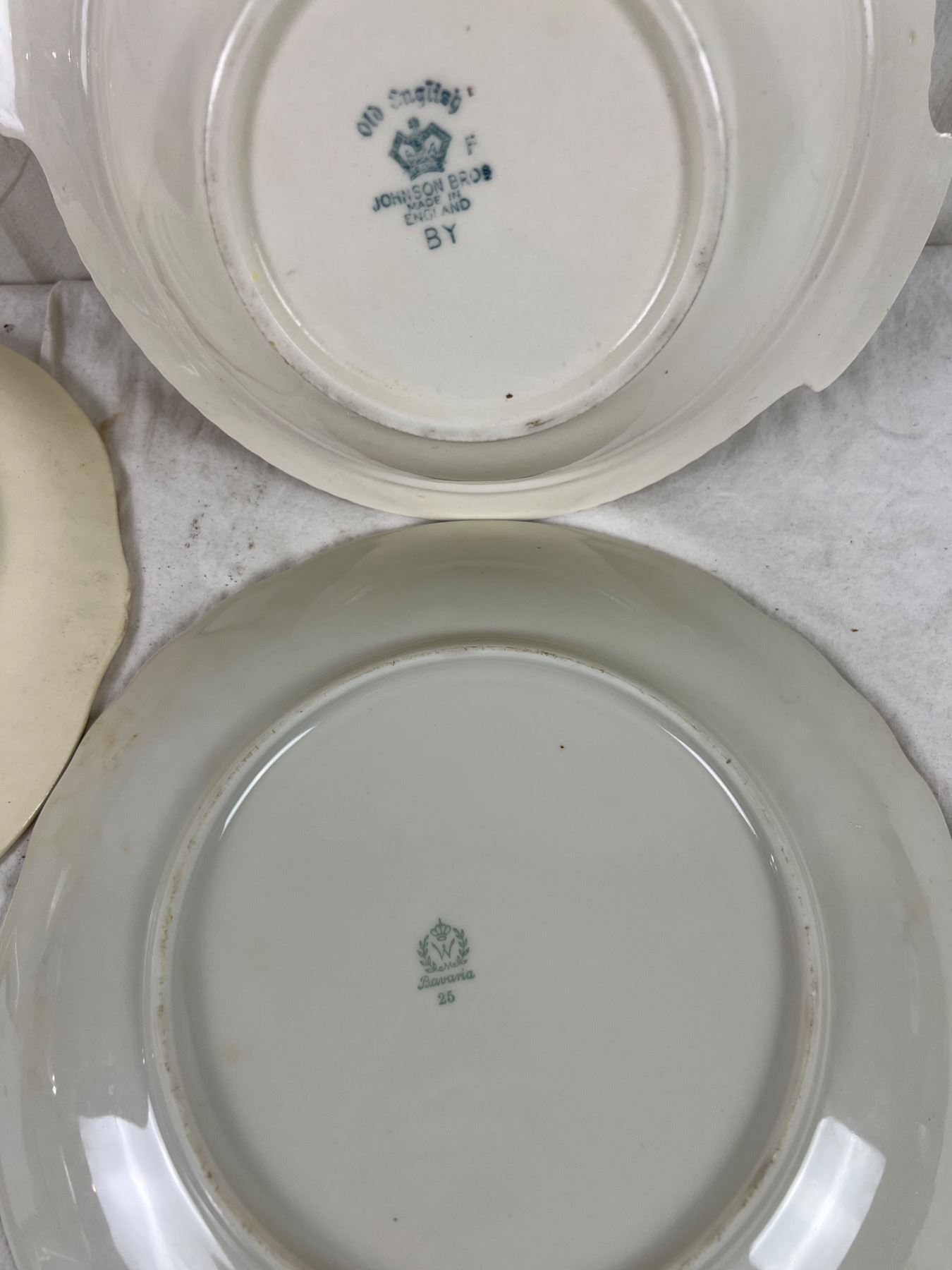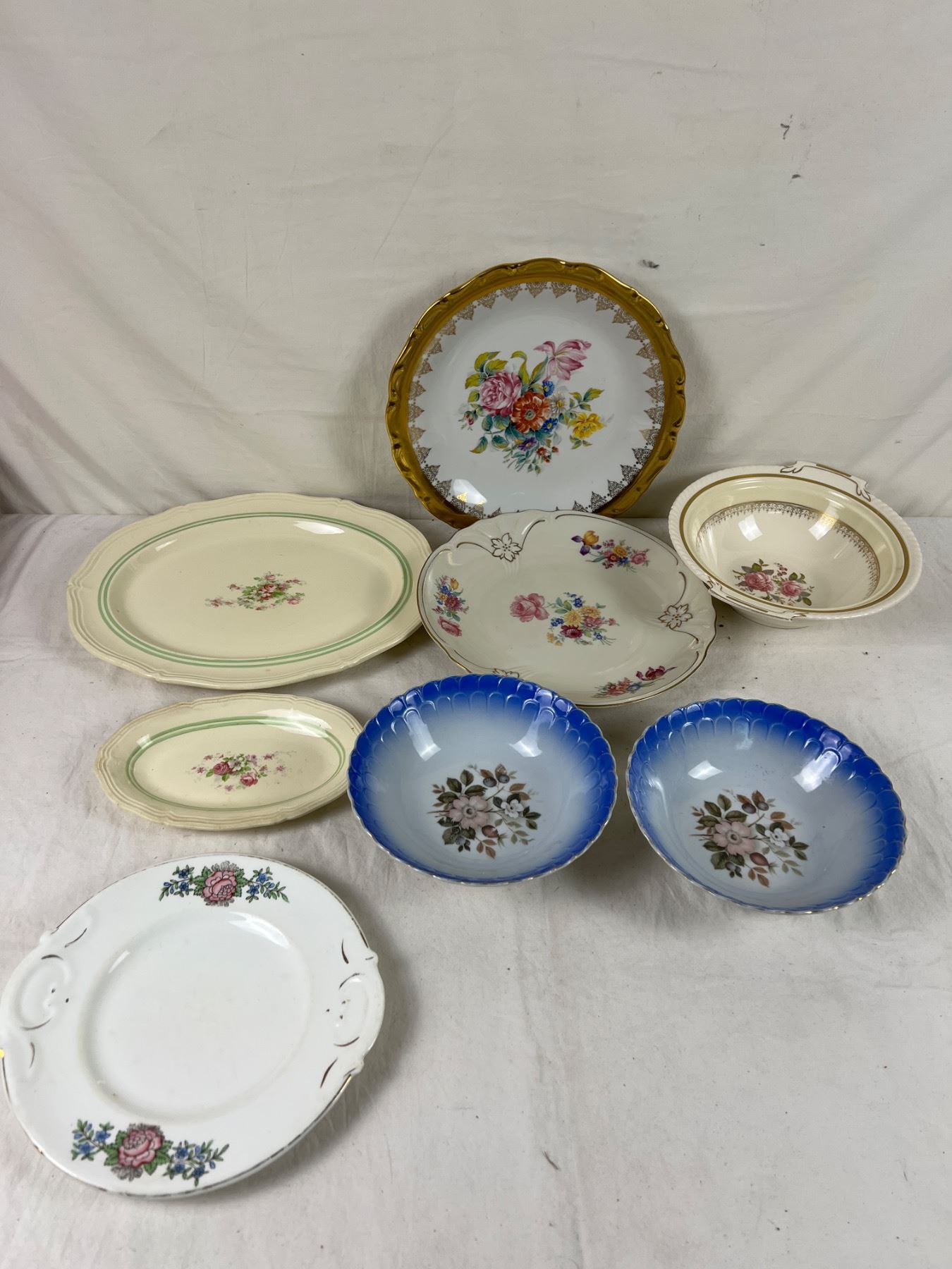 Largest platter is 14" by 11". Some fade of paint/discolouration to pieces.
