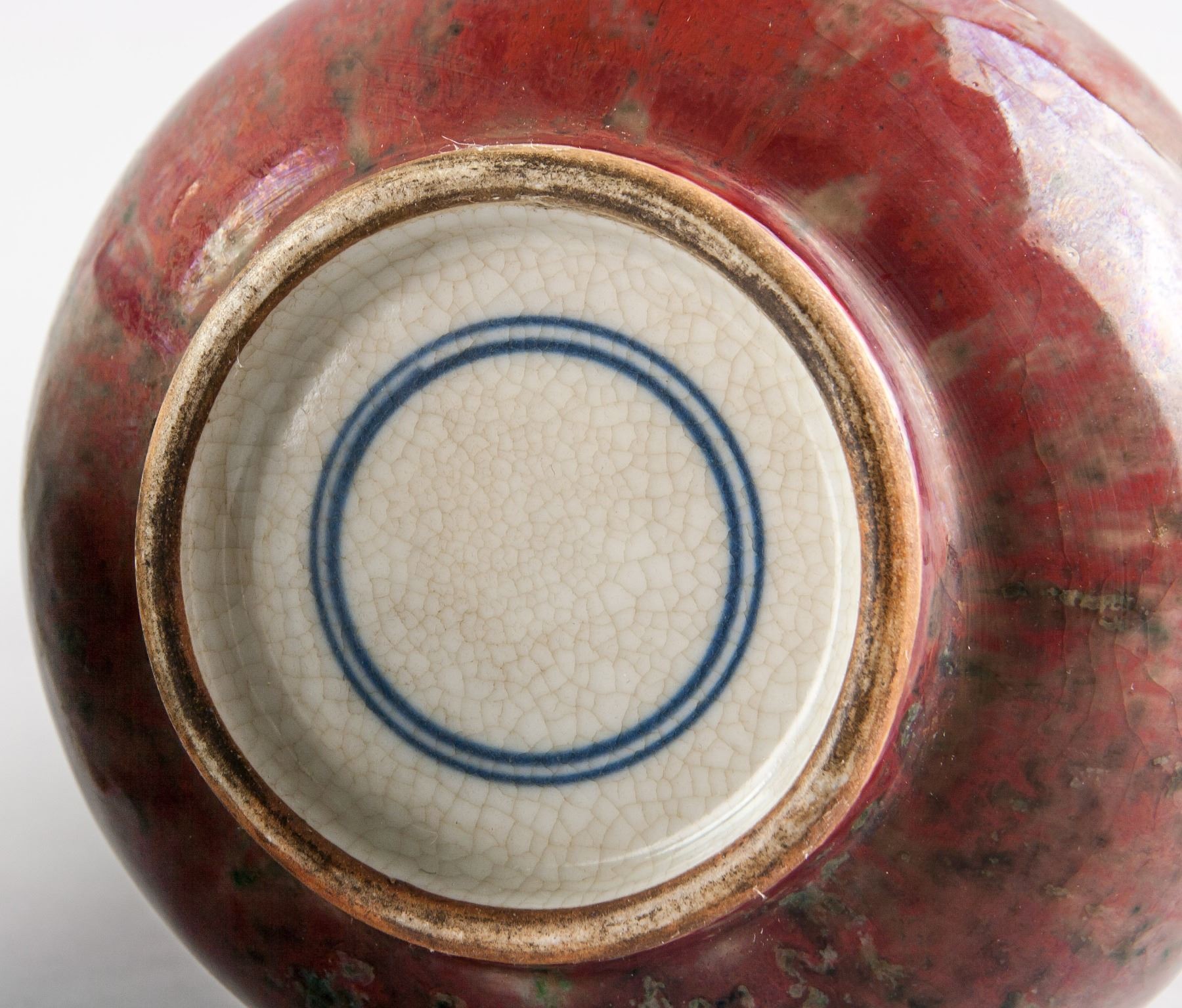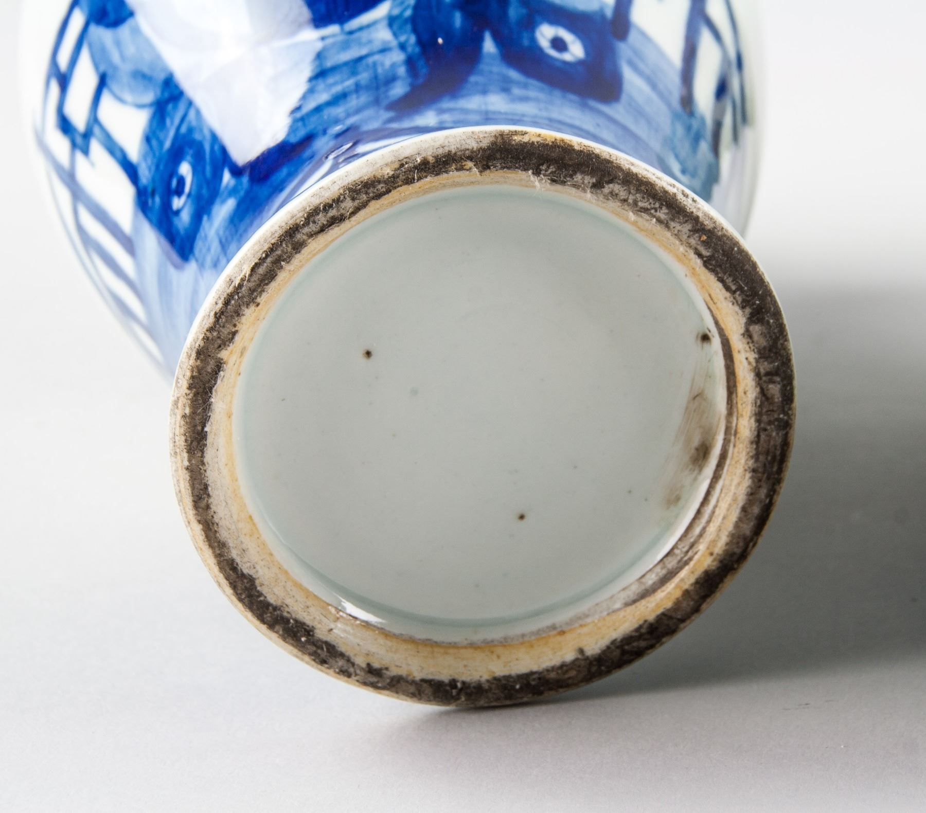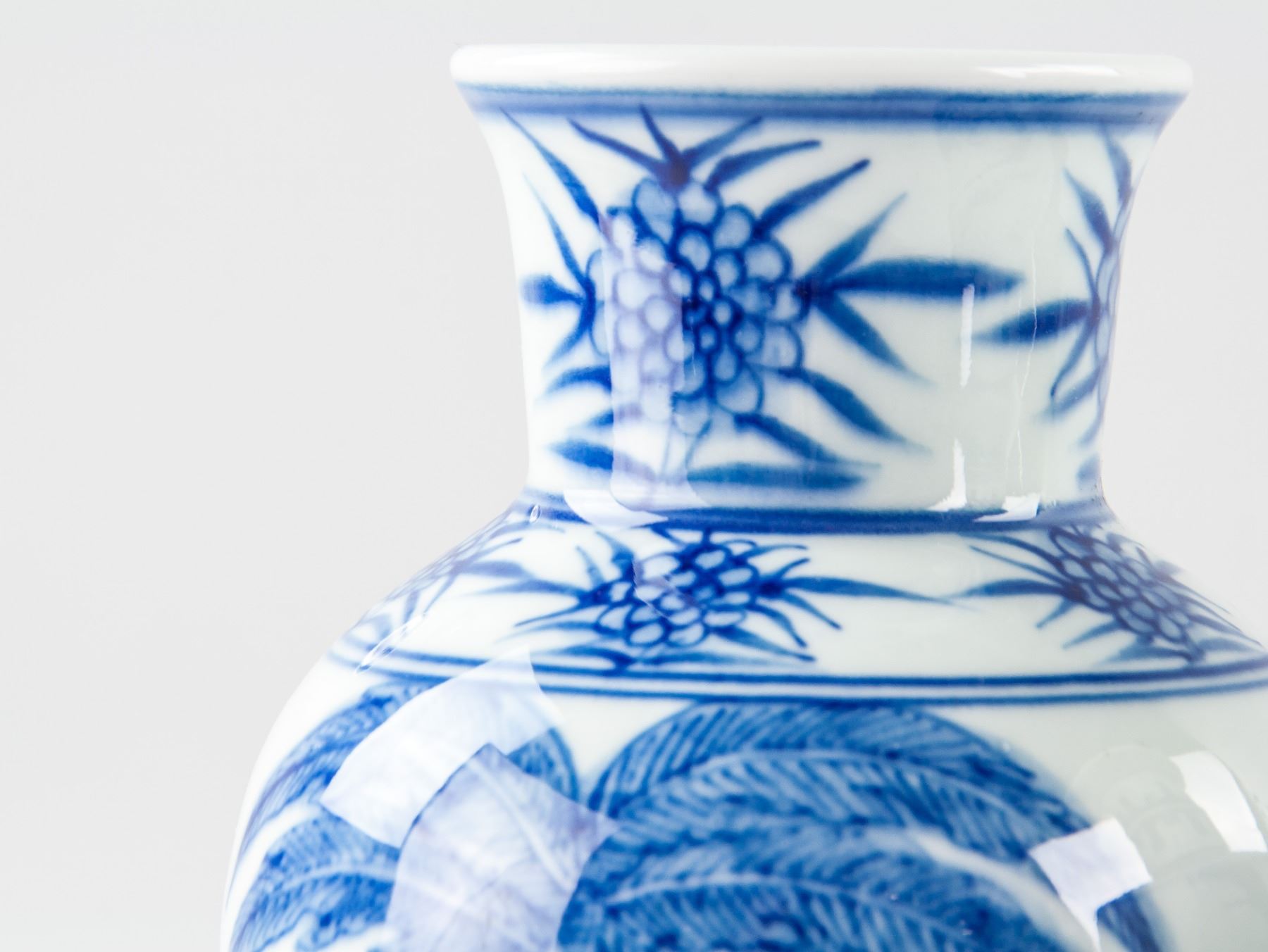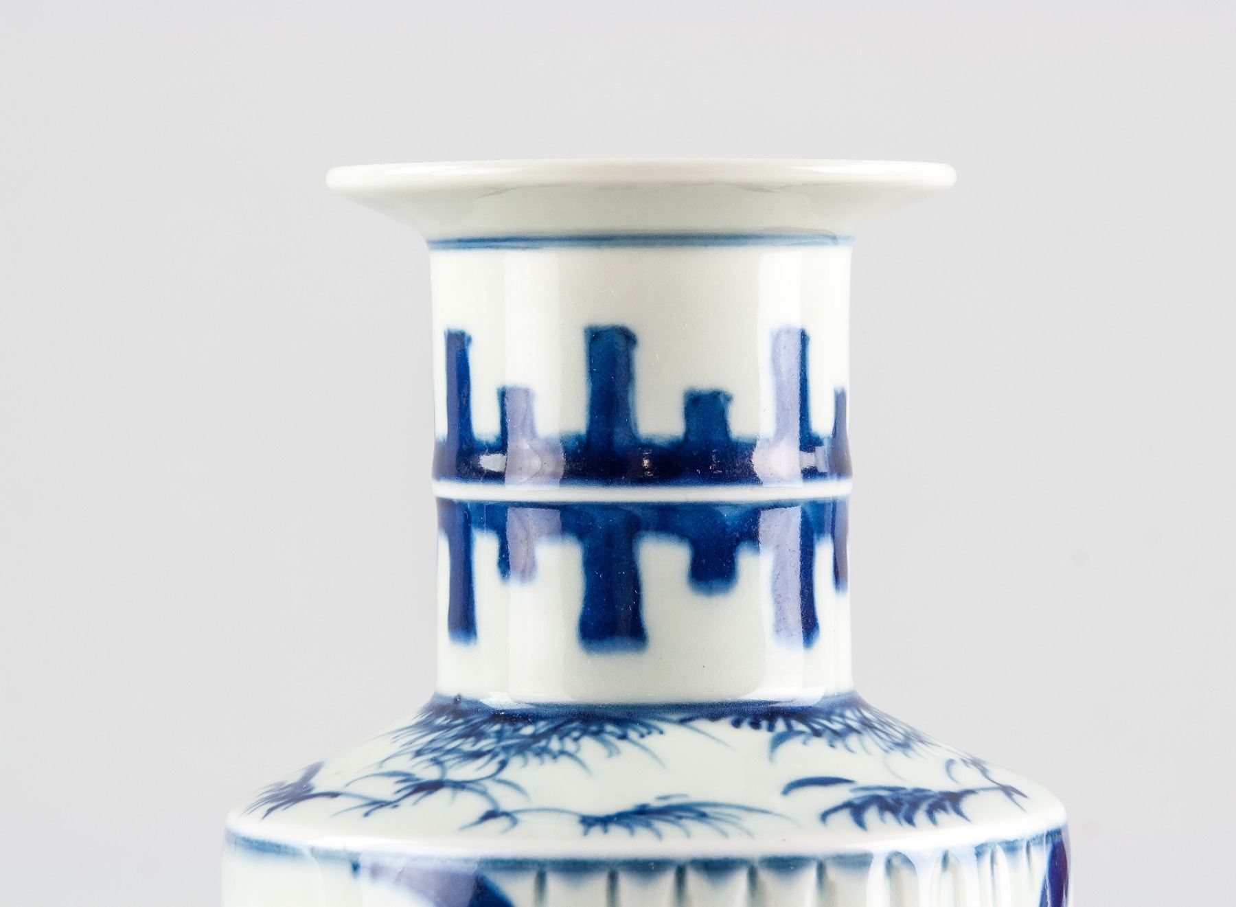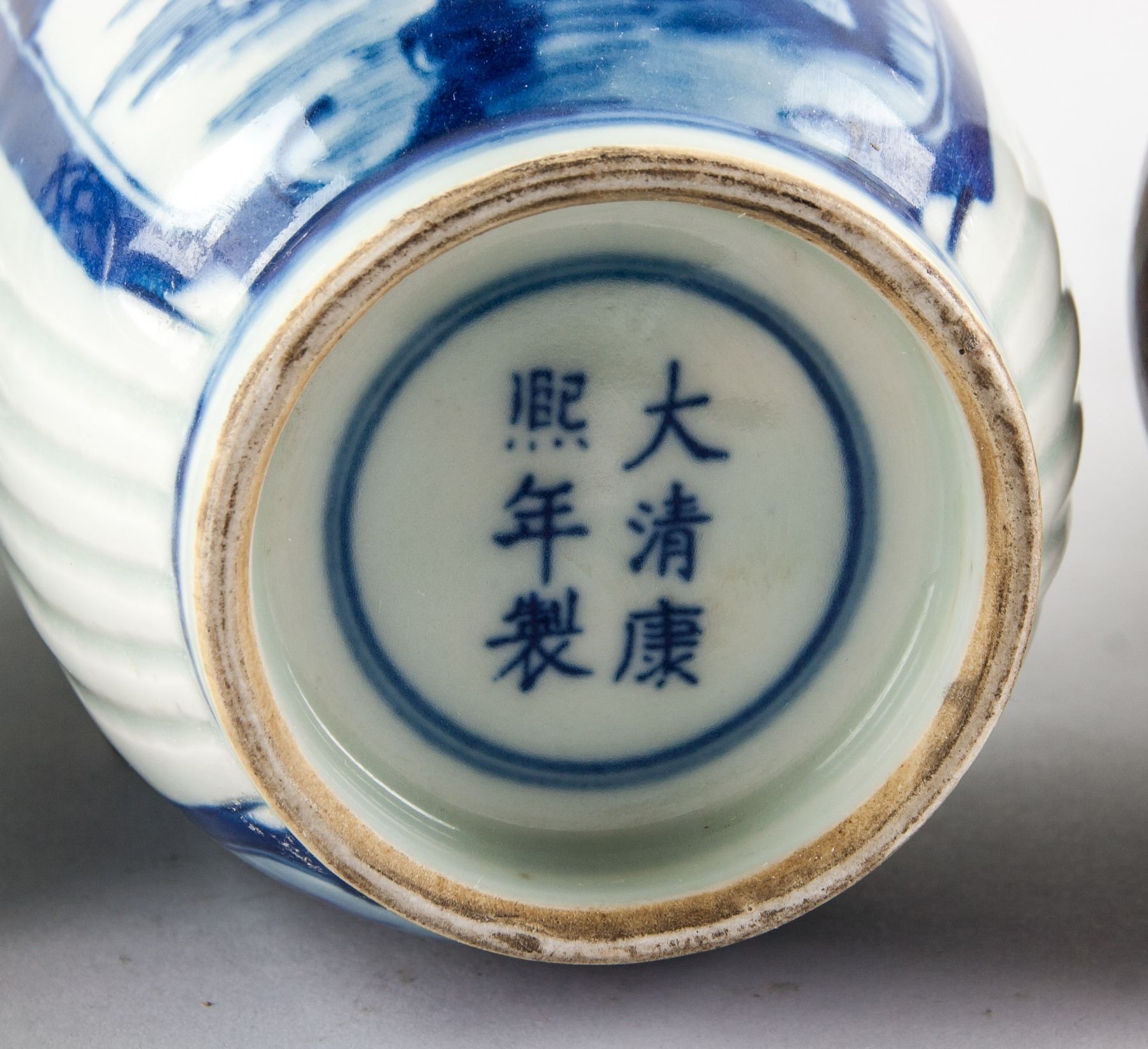 3 assorted Chinese porcelain vases, one of blue and white baluster form, painted with figures, one of blue and white cylinder form, painted with mountainous landscape, six-character Qing Kangxi mark on base, one of gourd form, covered by red flambe glaze, double ring mark on base, 1. 20 x 10.5 cm, 733 grams, 2. 21 x 10 cm, 513 grams, 3. 24 x 9.5 cm, 608 grams
