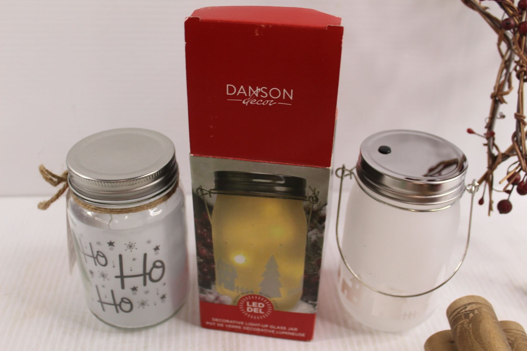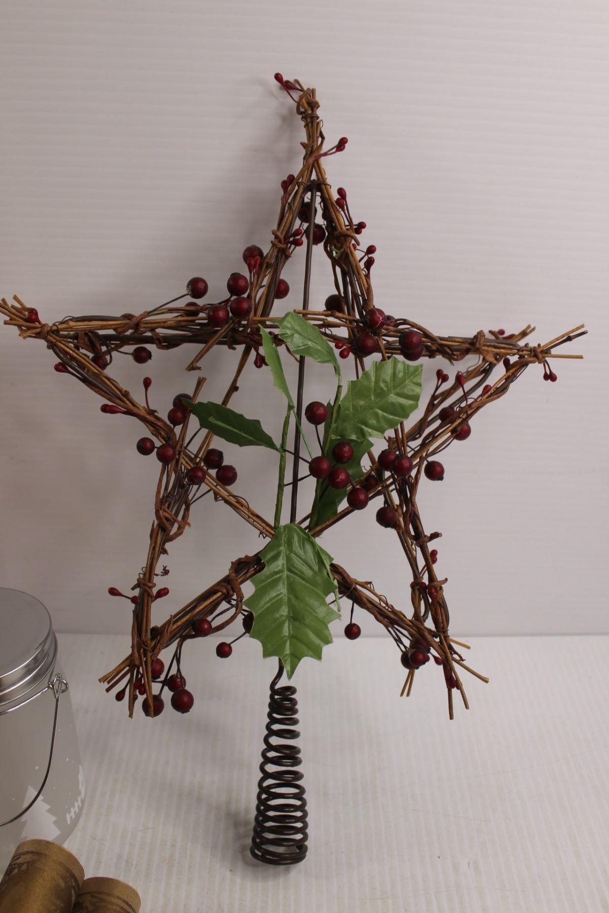 Assorted Christmas Decorations - Glass Jars, Tree Topper