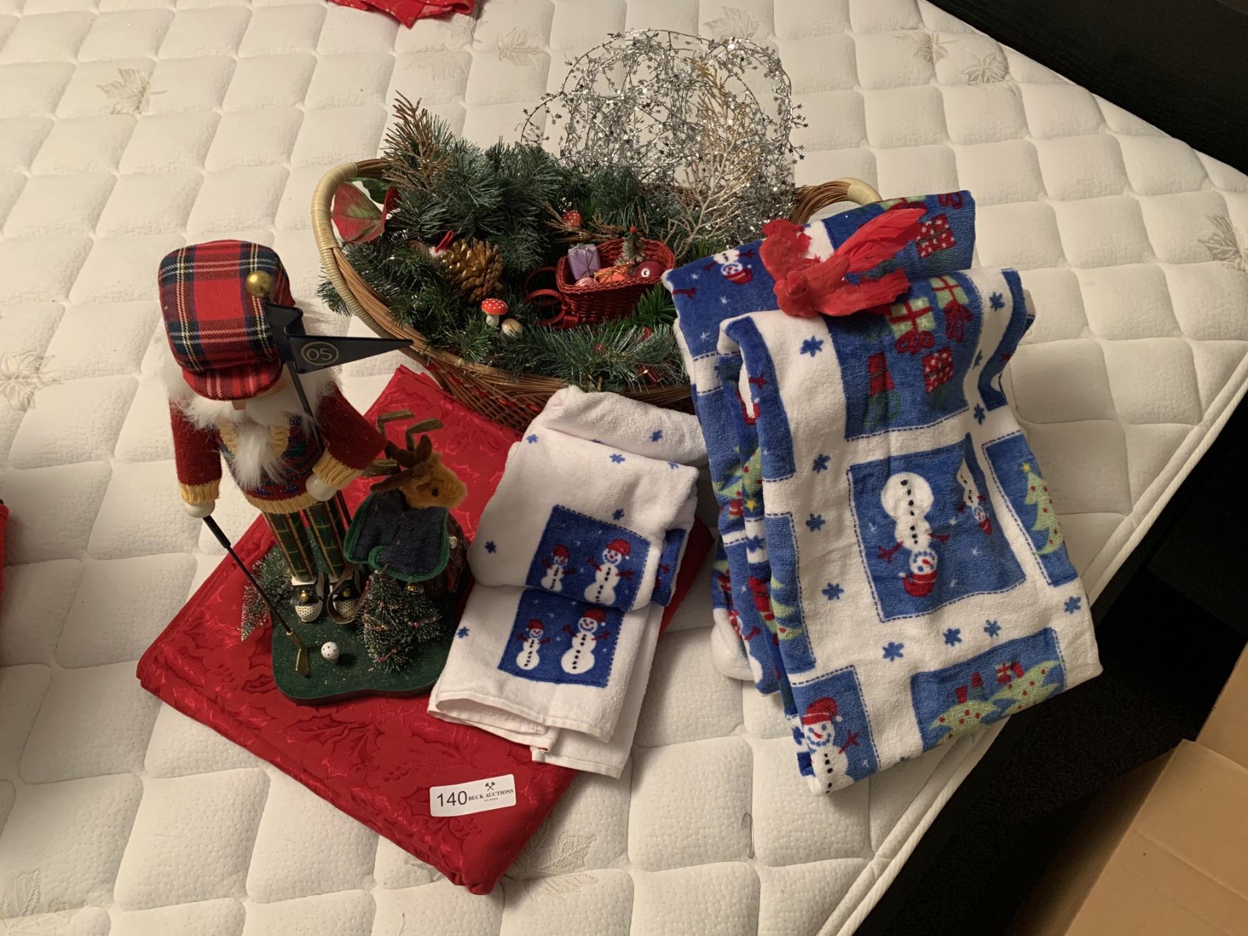 Assorted Christmas Decorations - Nutcracker, Basket, Towels, Tablecloth, & more!