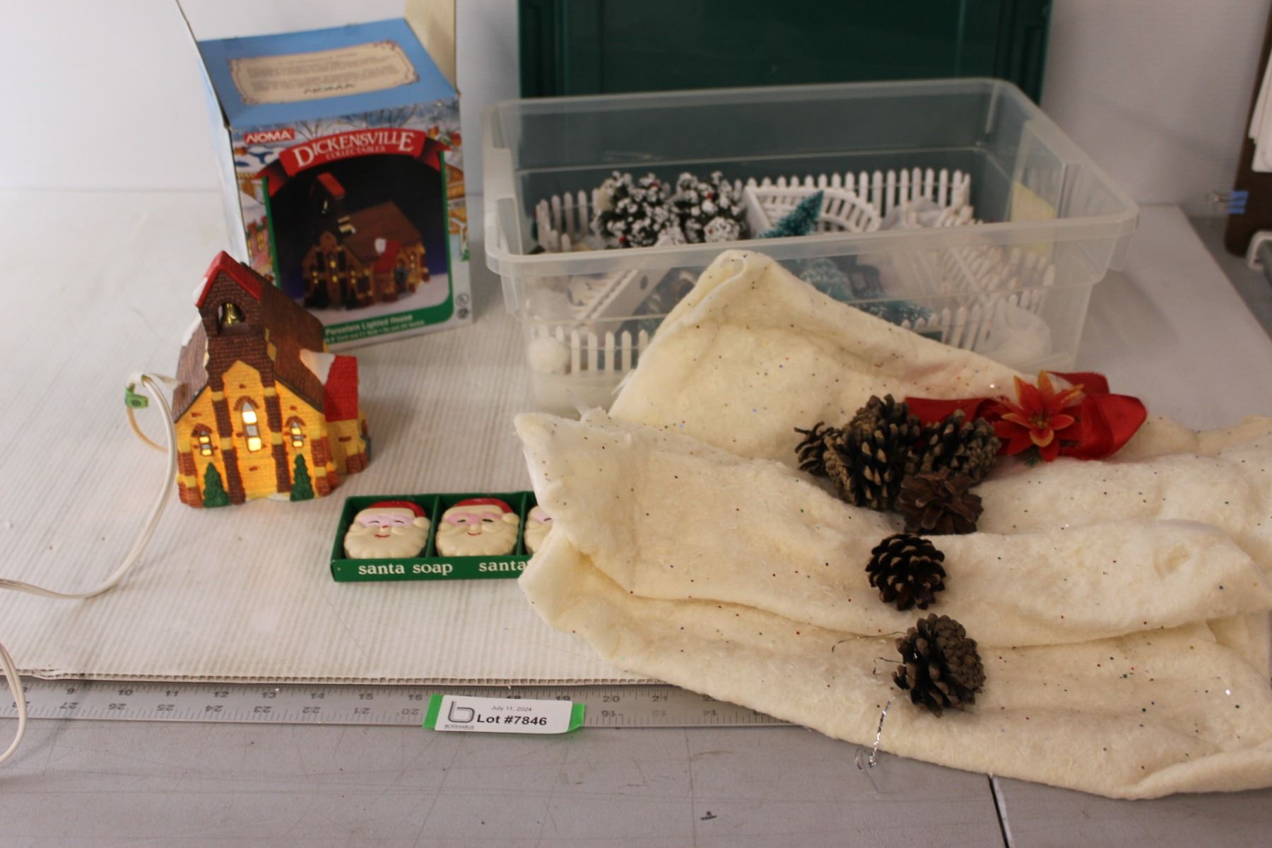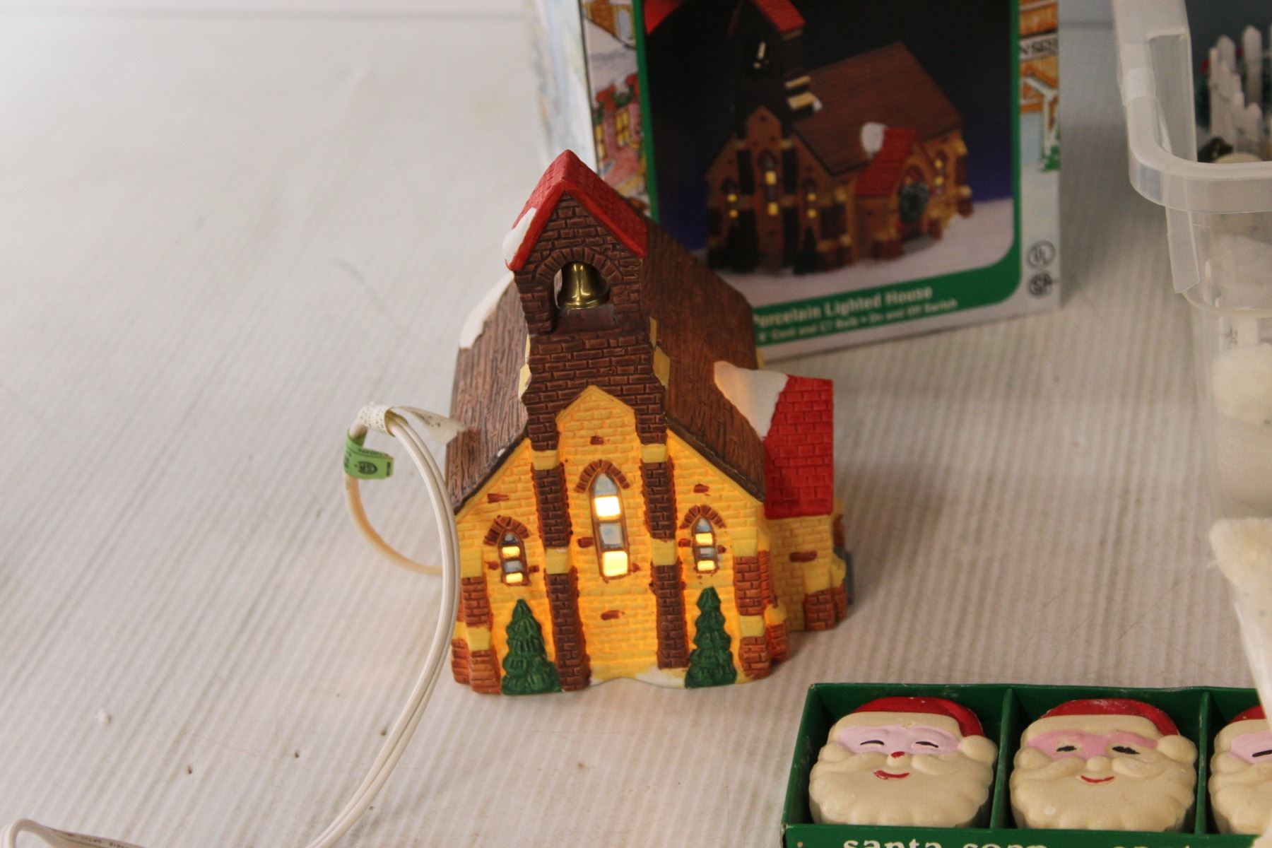 Assorted Christmas Decorations, Porcelain Light Up House - Works